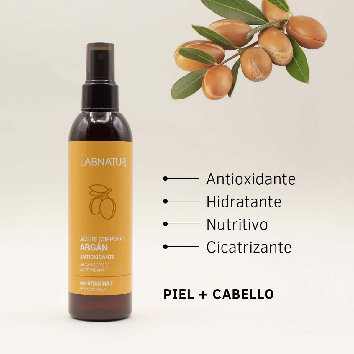 Nuestro Aceite Corporal de Argán Labnatur es un tratamiento intensivo que hidrata y revitaliza intensamente la piel y el cabello. Formulado con ingredientes naturales, es ideal para nutrir en profundidad, mejorar la elasticidad de la piel y devolverle su luminosidad natural.