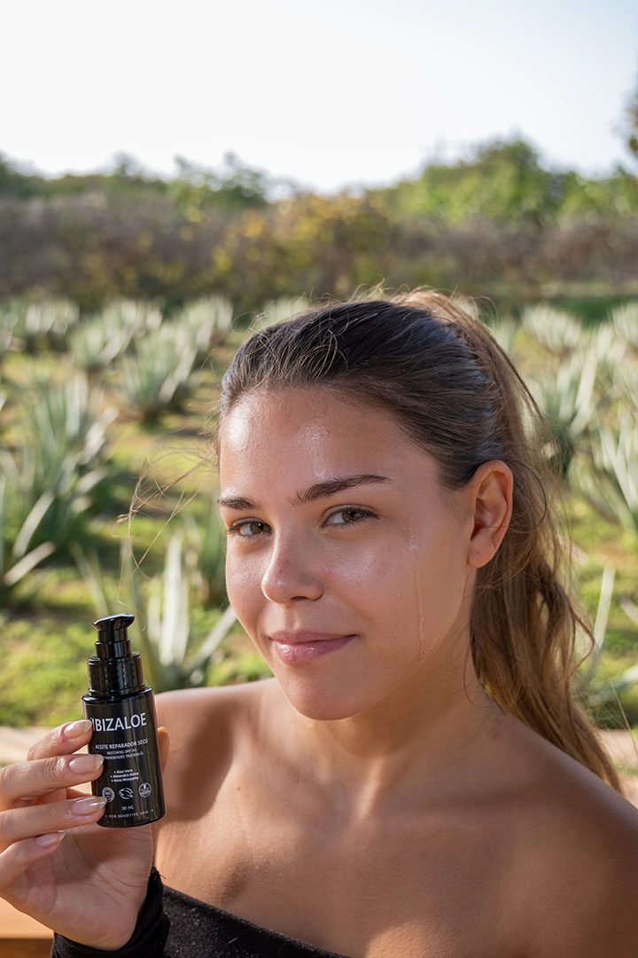 Su mezcla de aceites de almendra y rosa mosqueta, viña roja y aceites esenciales —con nuestro aloe vera cultivado de forma ecológica en Ibiza— ayuda a hidratar, suavizar marcas y mimar incluso las zonas más secas, además de domar puntas y aportar brillo al cabello. Sigue leyendo y descubre cómo incorporarlo a tu rutina de piel y cabello para un extra de confort diario.