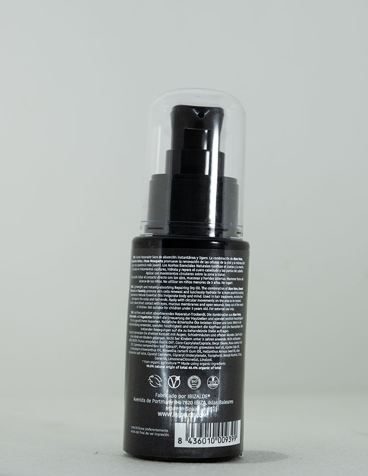 El Aceite reparador seco 30 ml es una combinación de Aceite de Almendras, Aceite de Rosa Mosqueta, Aceite de Viña Roja y Aceites Esenciales Naturales pensado para hidratar, reparar y prevenir las afecciones cutáneas producidas por la edad.