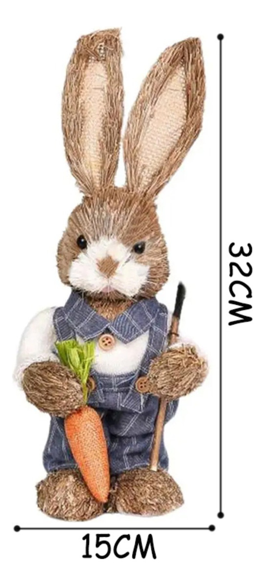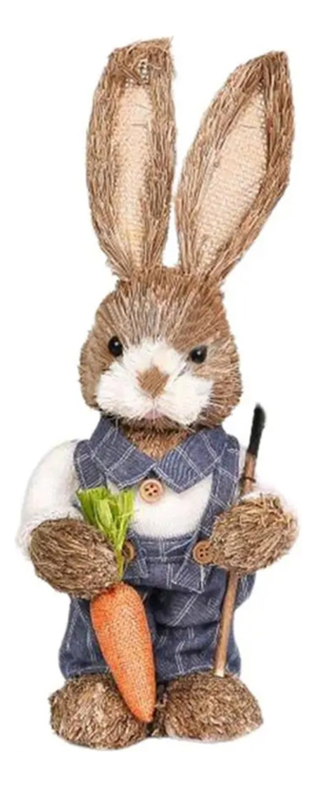 Adorno Decoracion Conejo De Pascuas Jardinero Zanahoria 30cm