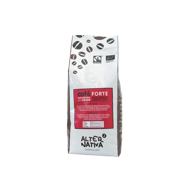 El Cafe en Grano Forte Bio de Alternativa3 es un blend de cafe con un perfil único y especial compuesto por Arabica de Centroamérica y Robusta de África. Su sabor es fuerte y denso, con una nota destacable que es persistente en paladar. Es una bebida ideal para los consumidores que aprecian los sabores intensos.