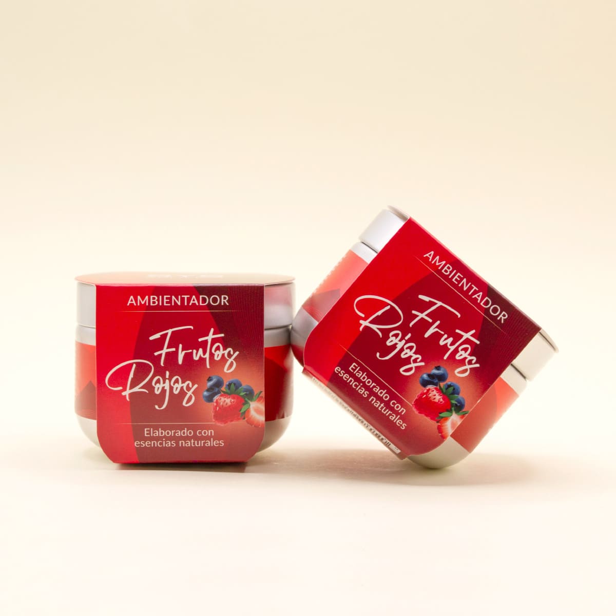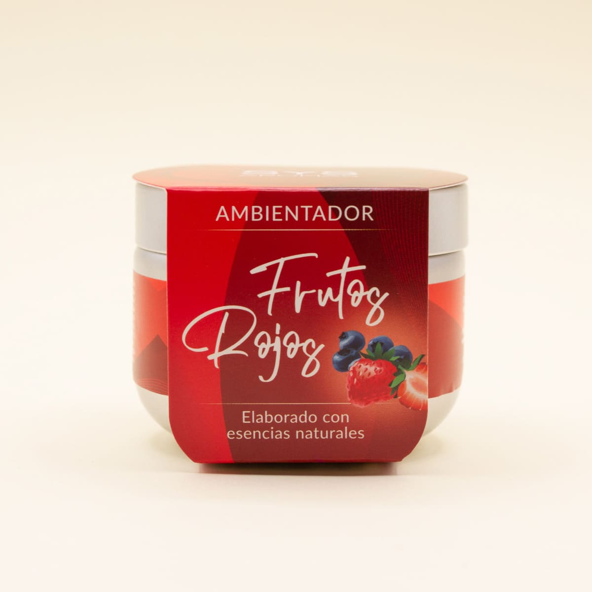 La ambientador de Frutos Rojos, se ha creado al unir las esencias de la fresa, arándano, frambuesa grosella y cereza. Estos frutos del bosque forman una combinación única y crean un aroma muy especial que concentra la dulzura y la pasión de estas frutas y nos transporta al bosque.