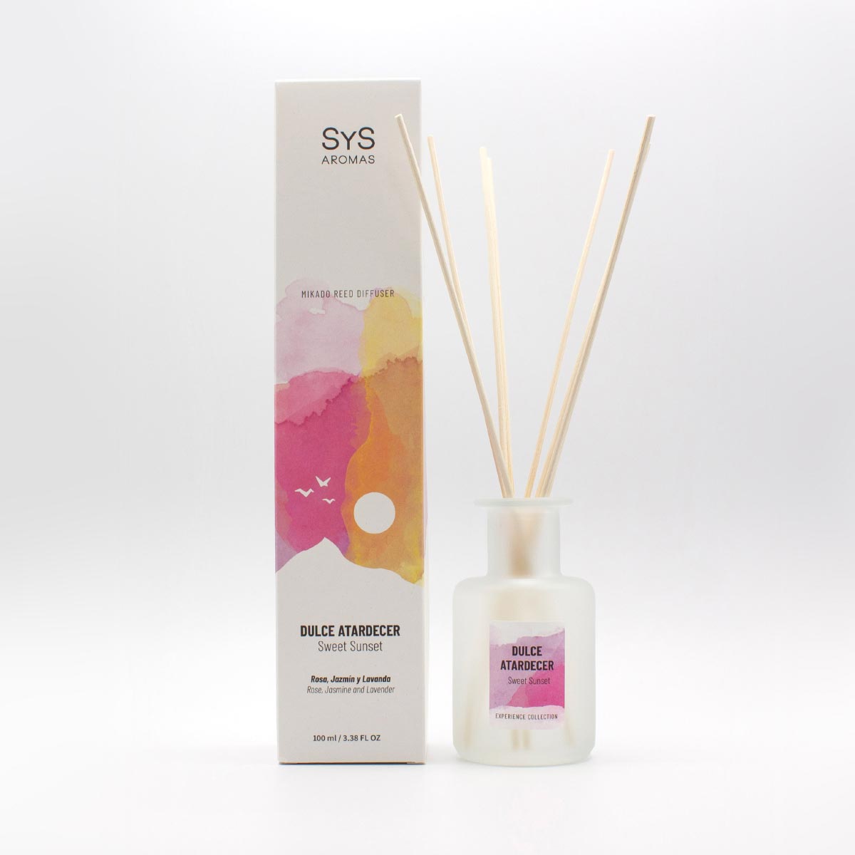La Colección Experience ha sido creada para despertar los sentidos y transformar cada rincón en un lugar único. Nuestro Ambientador Mikado Dulce Atardecer es ideal para llenar tu hogar de paz, bienestar y frescura. ¡Descubre el poder de la aromaterapia con SYS Aromas y disfruta cada día de un ambiente natural, relajante y acogedor!