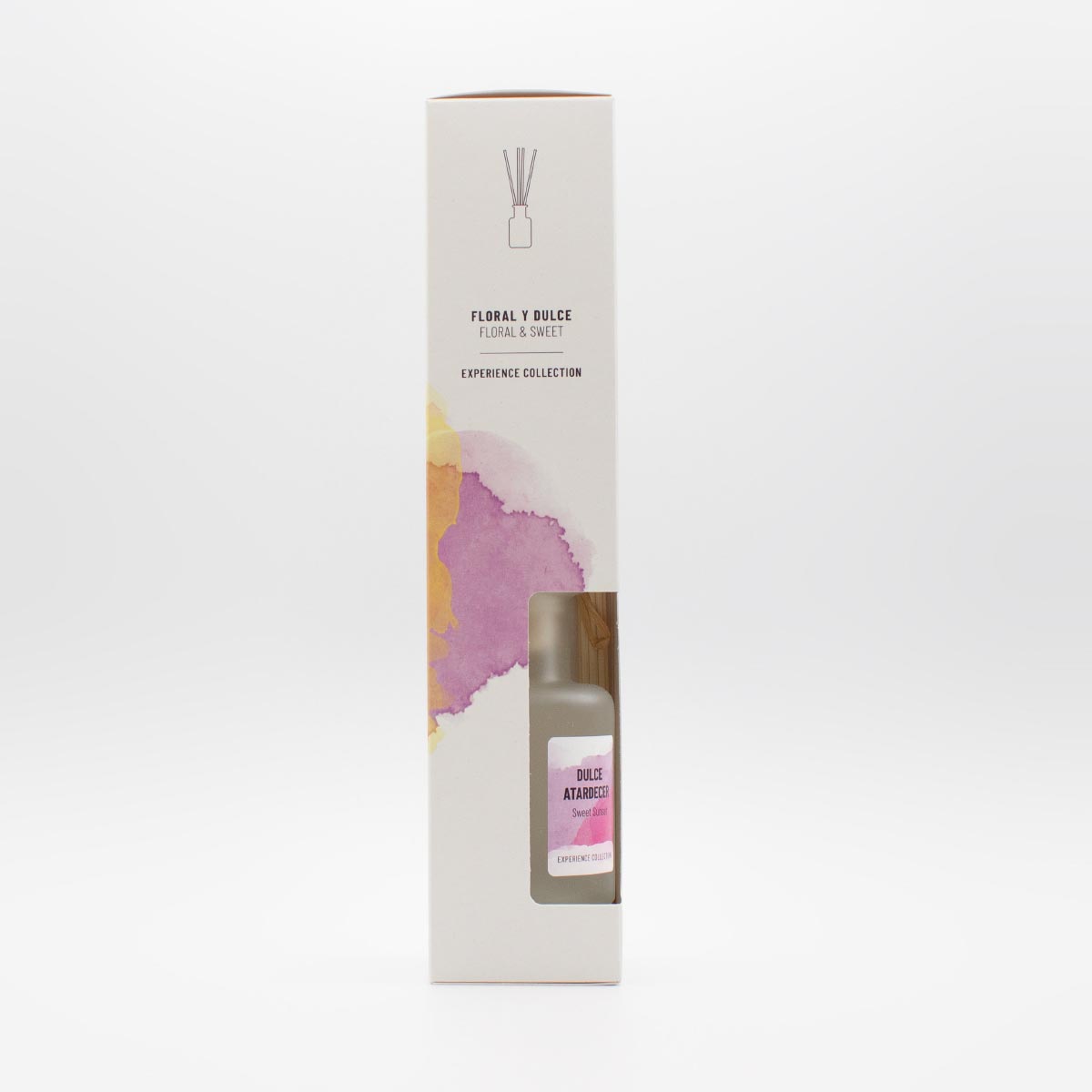 Nuestro Ambientador Mikado Dulce Atardecer 100ml de la Colección Experience de SYS Aromas combina la elegancia de la Rosa, la suavidad del Jazmín y la delicadeza de la Flor de Cerezo para crear una fragancia floral y herbal que transmite calma, serenidad y equilibrio. Un ambientador mikado natural que envuelve tu hogar en un halo de bienestar y armonía.
