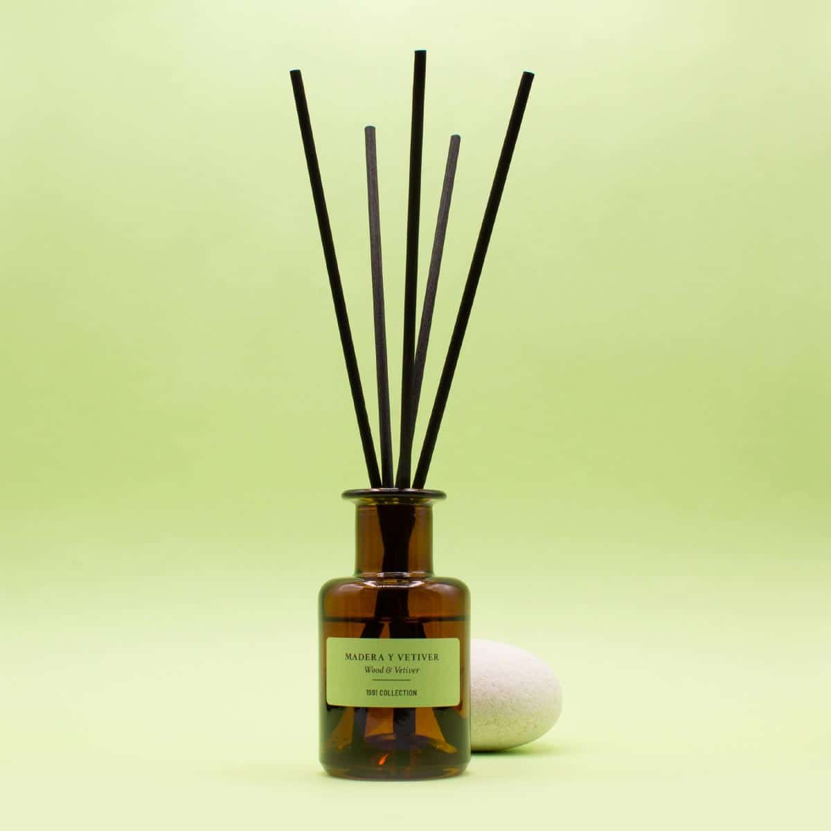 Nuestro Ambientador Mikado Madera y Vetiver 100ml de la Colección 1991 de SYS Aromas combina la fuerza amaderada con la frescura cítrica del vetiver para crear un ambiente elegante y armonioso. Este ambientador mikado con fragancia natural transforma tu hogar en un espacio acogedor, sofisticado y lleno de bienestar.