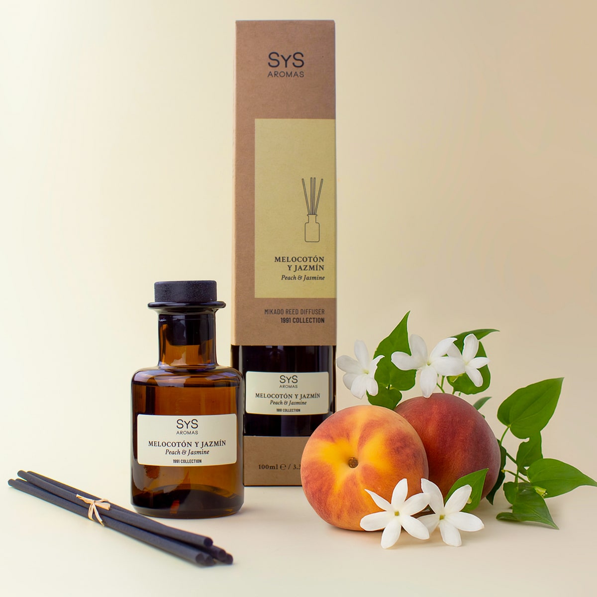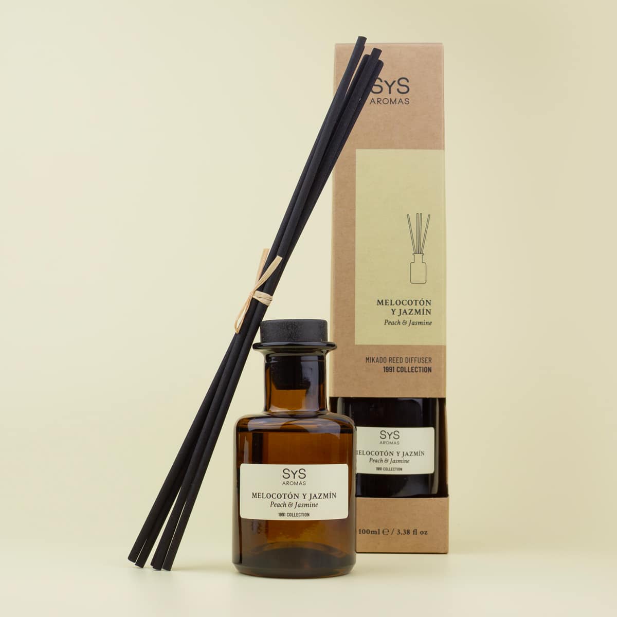 En honor a nuestro año de fundación, creamos la colección 1991, una fusión de tradición y sofisticación que hace que cada fragancia sea un reflejo de nuestra historia y nuestro compromiso con la excelencia. Nuestro Mikado Melocotón y Jazmín es una expresión de frescura, elegancia y emoción que convierte cualquier espacio en una experiencia sensorial única. ¡Dale a tu hogar un toque relajante, natural y acogedor con SYS Aromas!