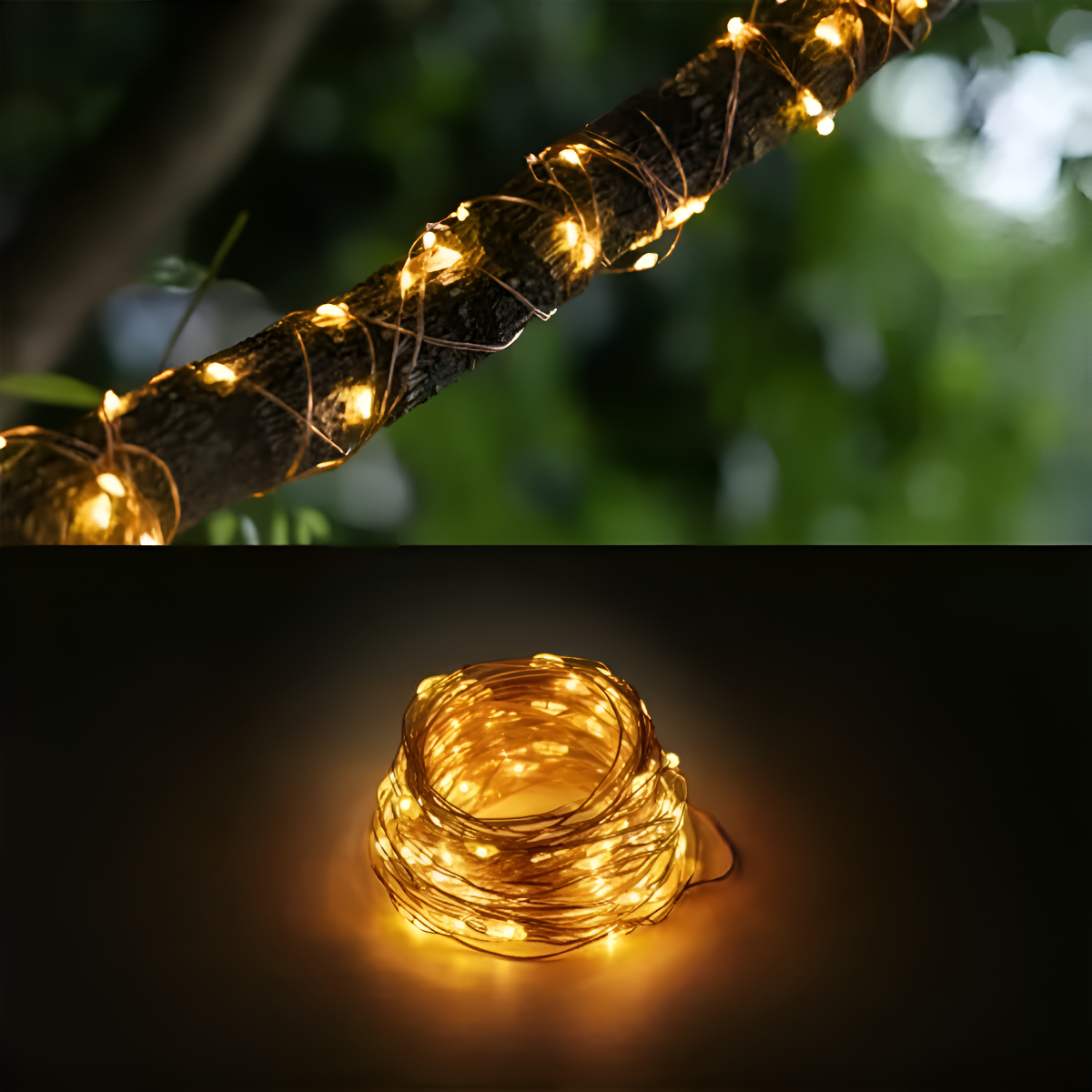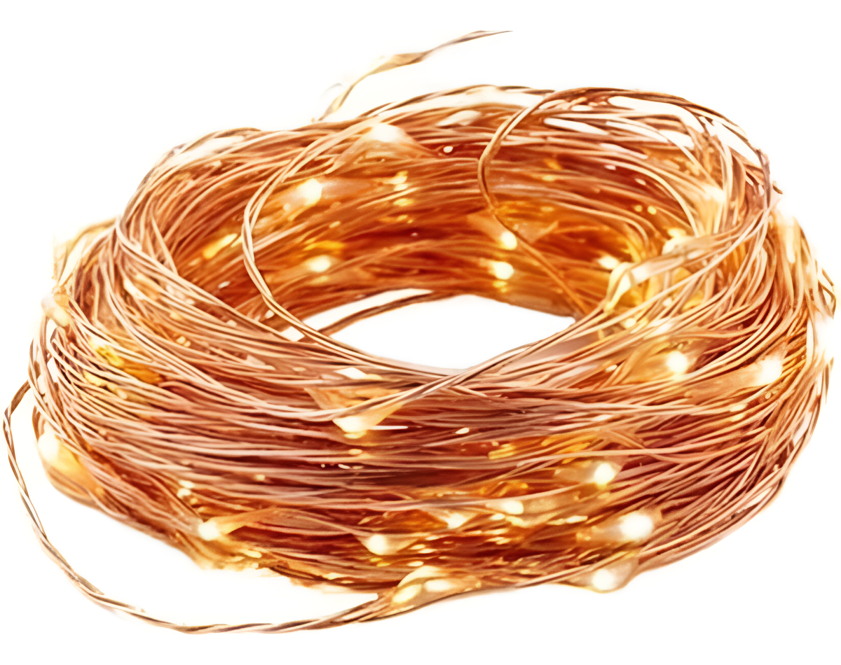 2. Cable de Cobre y Flexibilidad Total: El alambre, de un sofisticado color cobre, es el secreto de su versatilidad. Es un material súper flexible que le permite moldear, envolver y contornear la guirnalda con precisión quirúrgica. ¿Desea escribir un nombre, crear un corazón o decorar un bonsái? El alambre color cobre mantiene la forma sin esfuerzo. Además, su delgadez hace que el cable sea prácticamente invisible cuando las luces están encendidas, dejando solo el efecto flotante de los Mini Leds.
