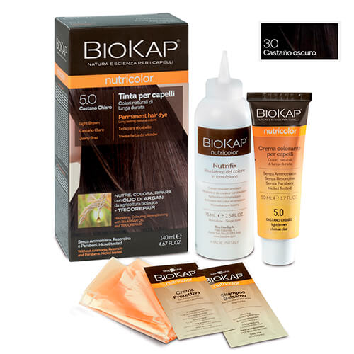¿Quiere un cambio de look pero al mismo tiempo cuidar el cabello y dejarlo suave y brillante? El Tinte Nutricolor 3.0 Castaño Oscuro de Biokap es la solución perfecta. Esta fórmula exclusiva está compuesta por ingredientes vegetales y posee una alta tolerancia para la piel que permite que el cabello sea nutrido y reparado mientras es tintado. Las canas no serán un problema gracias a su perfecto cubrimiento y además de dejar un color precioso y profundo en el cabello, lo dejará suave y brillante como el primer día.