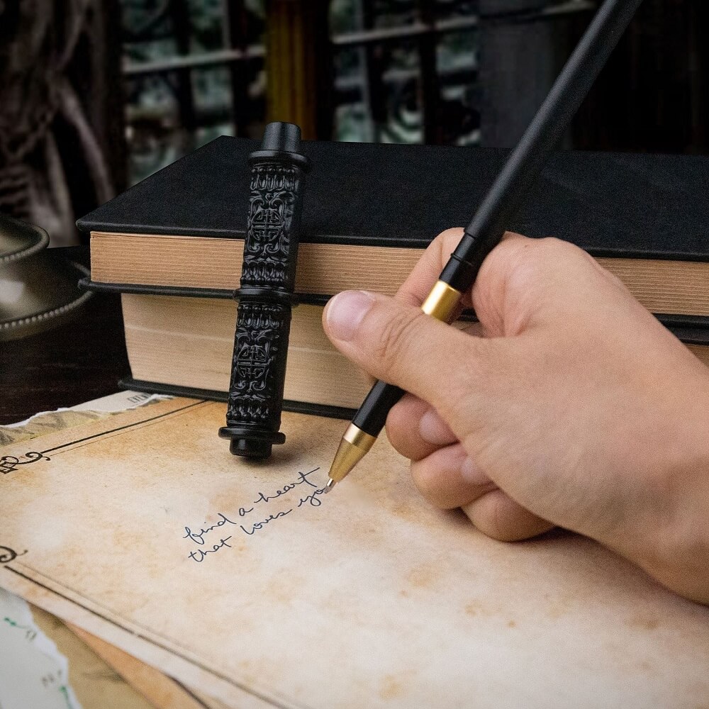 Este Bolígrafo Varita Profesor Snape no solo es estéticamente atractivo sino también ergonómicamente diseñado para una escritura cómoda y prolongada. Con detalles intrincados que imitan las texturas y colores de la varita original, cada bolígrafo es una obra de arte. Además, incluye un elegante soporte con el escudo de Hogwarts, ideal para exhibir en tu estudio o oficina y hacer saber a todos tu lealtad a Slytherin.