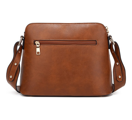 Cartera bandolera fabricada en cuero PU de alta calidad, en su parte inferior cuenta con cuatro bolas metálicas para evitar el desgaste de la misma.
