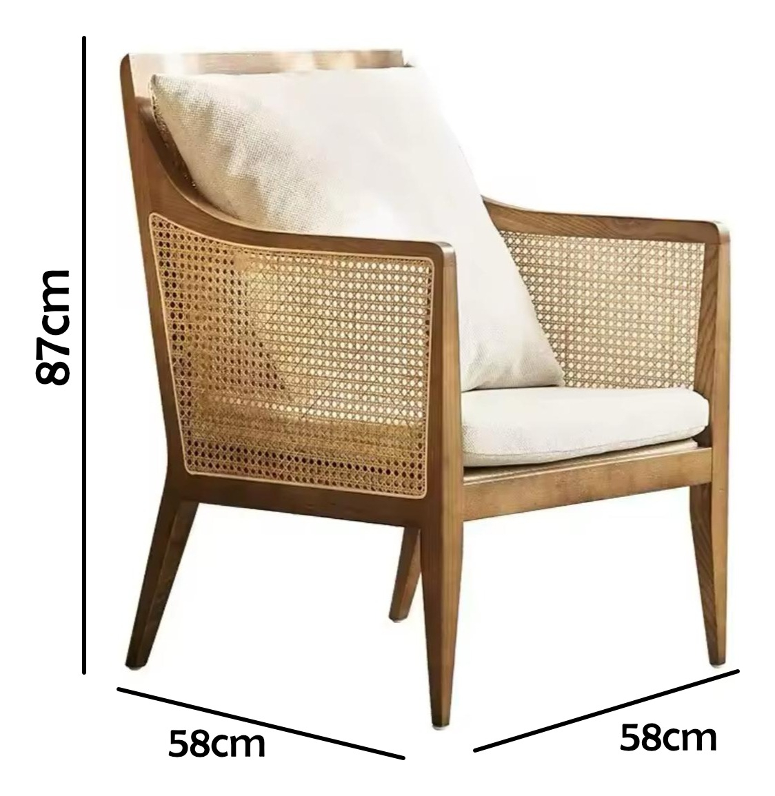 Aporta confort y estilo a tus espacios con esta elegante butaca de diseño nórdico y estilo boho. Fabricada con una estructura de madera resistente y un asiento acolchonado, combina funcionalidad y estética en perfecta armonía. Ideal para salas, dormitorios o rincones de lectura, su diseño minimalista y acogedor se adapta a cualquier decoración. Una opción perfecta para quienes buscan comodidad y un toque natural en su hogar.