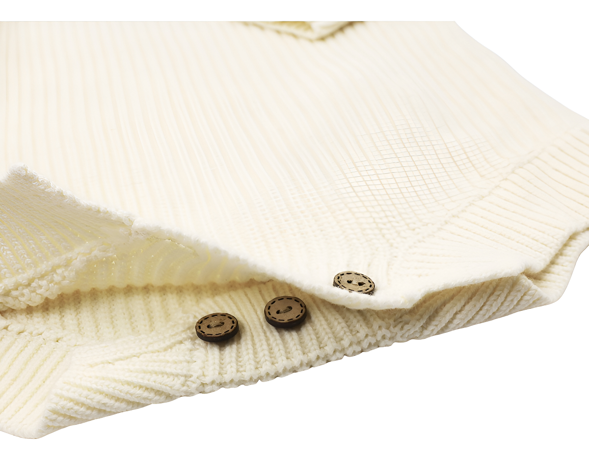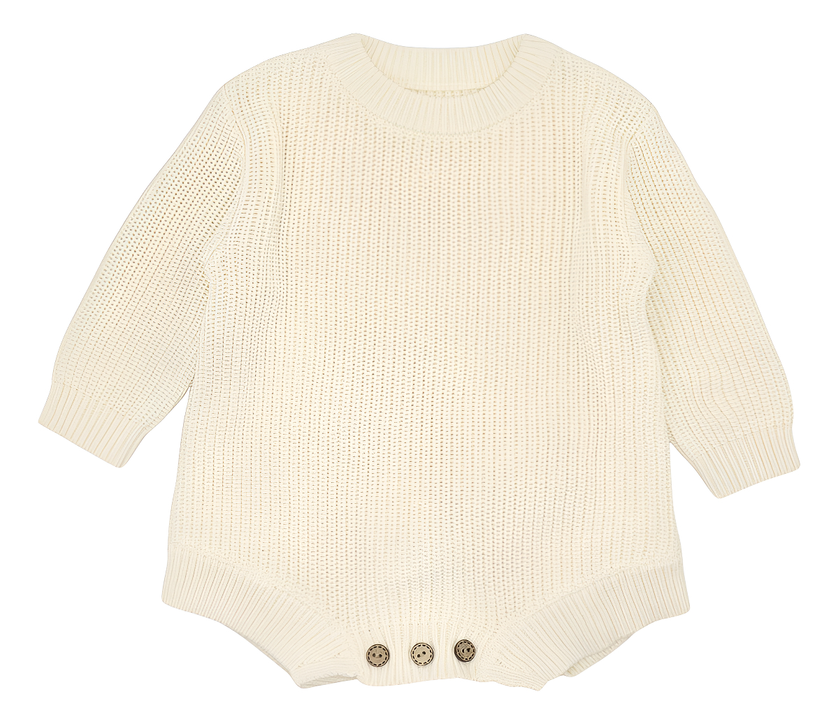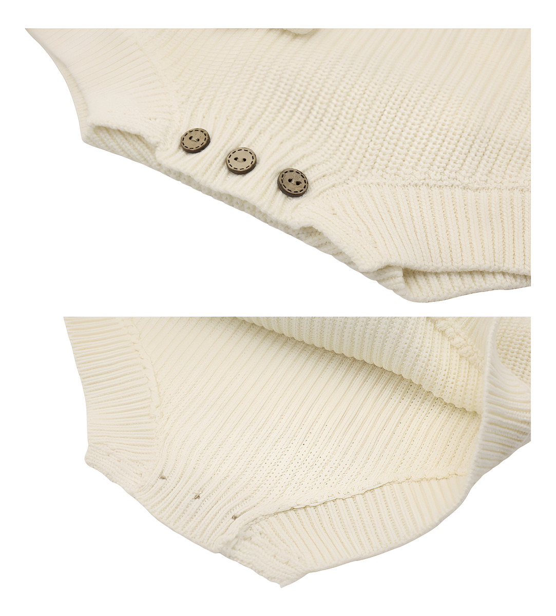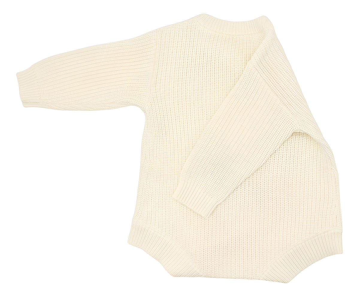 Cuenta con mangas largas, cuello redondo y cierre de botones en la parte inferior para facilitar el cambio de pañal sin incomodidades. Su estilo tejido le da un look moderno y adorable, perfecto para usar tanto en casa como en salidas.
