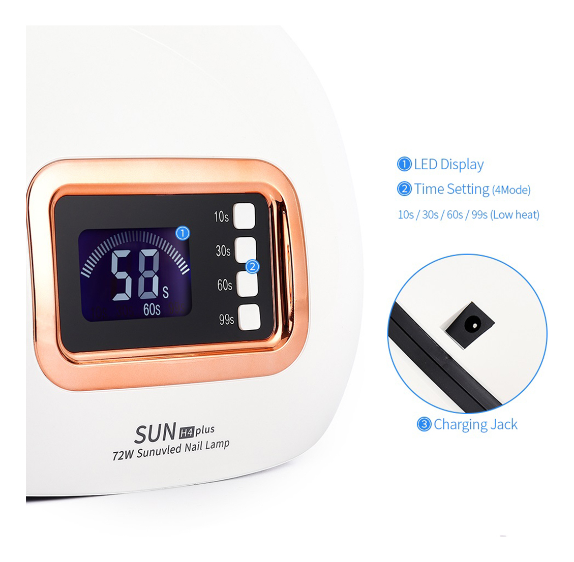 Diseñado para un experto profesional en uñas. Alta potencia: Secado rápido, sólo toma 10-30s para secar el gel. Pantalla LCD: fácil de ver el tiempo de secado. Espacio grande: puede secar 2 manos al mismo tiempo. Base extraíble: fácil de secar de los pies. Puede ajustar el tiempo de trabajo:10s/30s/60s/99s (calor bajo) Modo de calor bajo: Reduce el calor y te da una cómoda experiencia de secado. Detección inteligente, se puede controlar sin necesidad de pulsar botones. Conveniente para el secado de todo el gel de uñas: pegamento de fototerapia, pegamento de uñas, pegamento extendido.