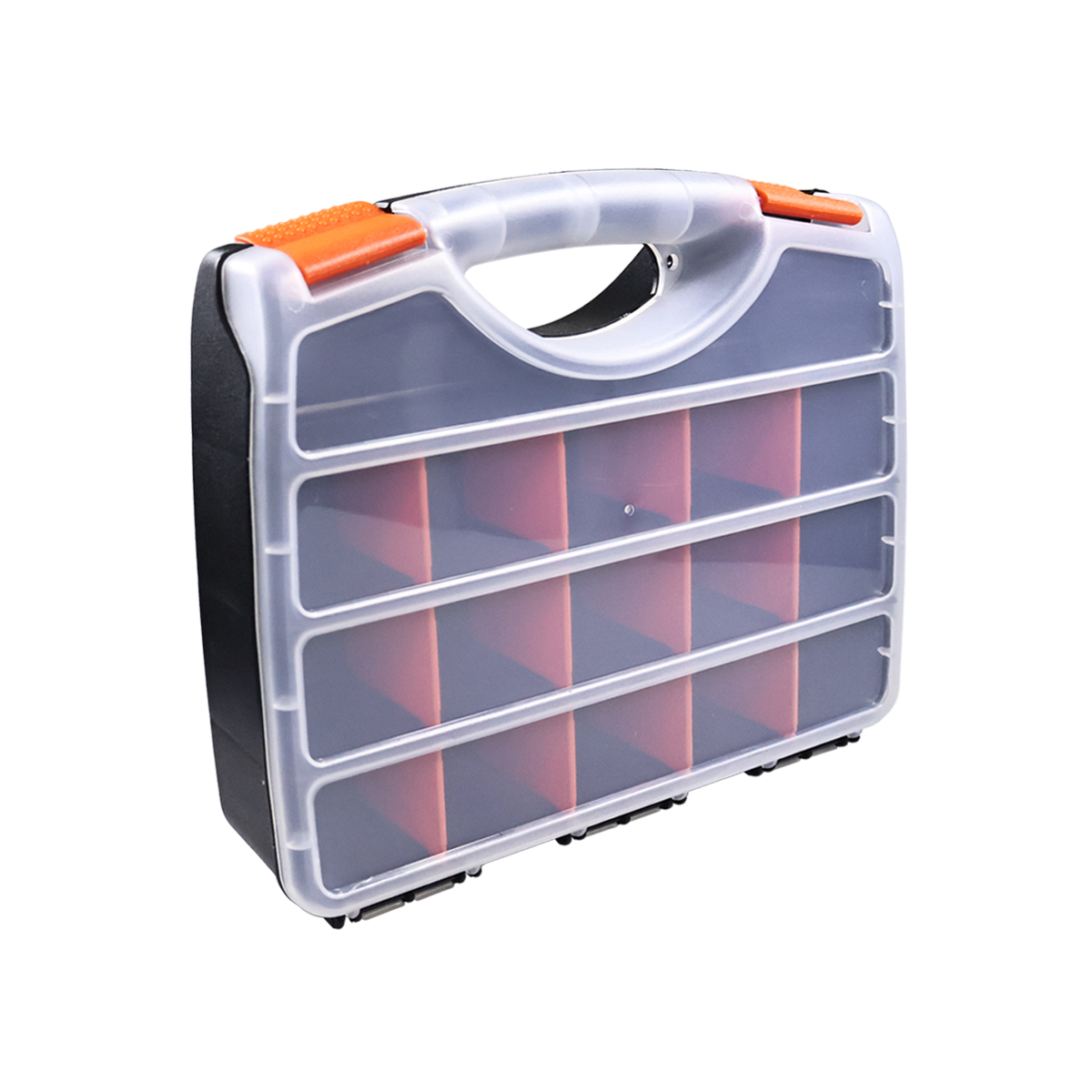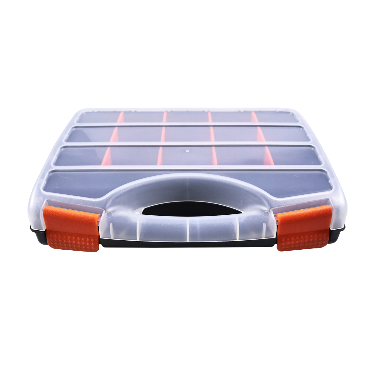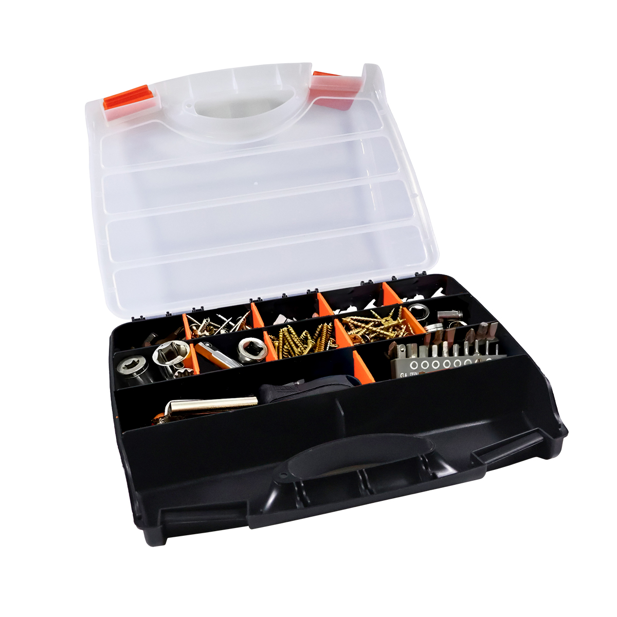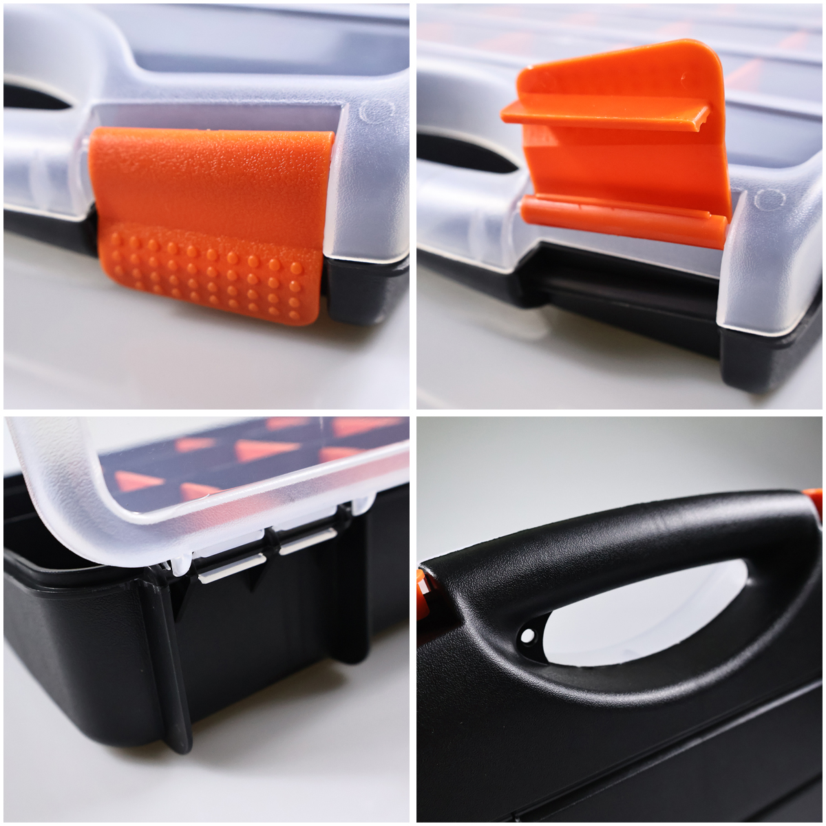 Organizá tornillos, clavos, tuercas y piezas pequeñas con esta práctica caja de 17 compartimentos. Su diseño portátil con manija integrada y tapa transparente te permite encontrar lo que necesitás de manera rápida y sencilla.