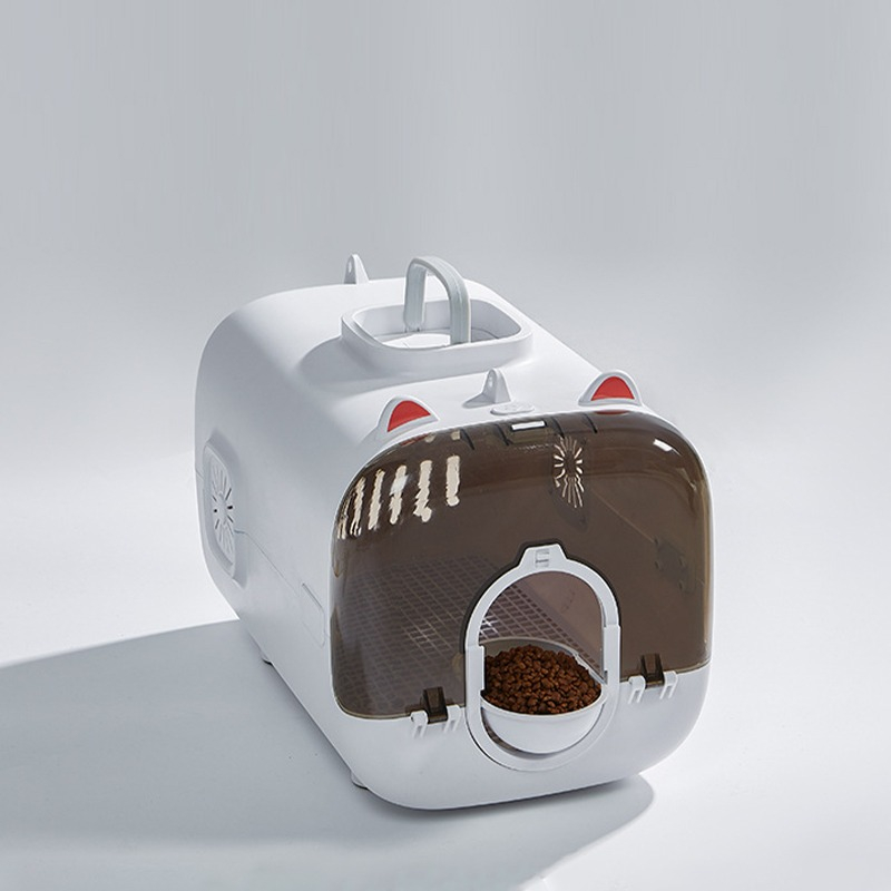 Caja transportadora para gatos y perros pequeños, incluye comedero y ventilación, ideal para viaje