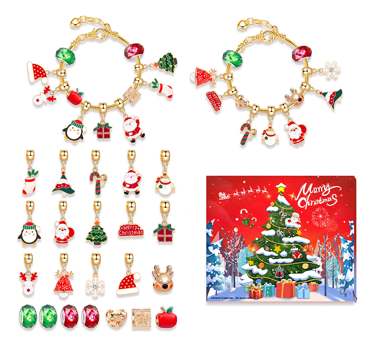 Calendario Adviento Navidad Pulsera Con Dijes 24 Sorpresas