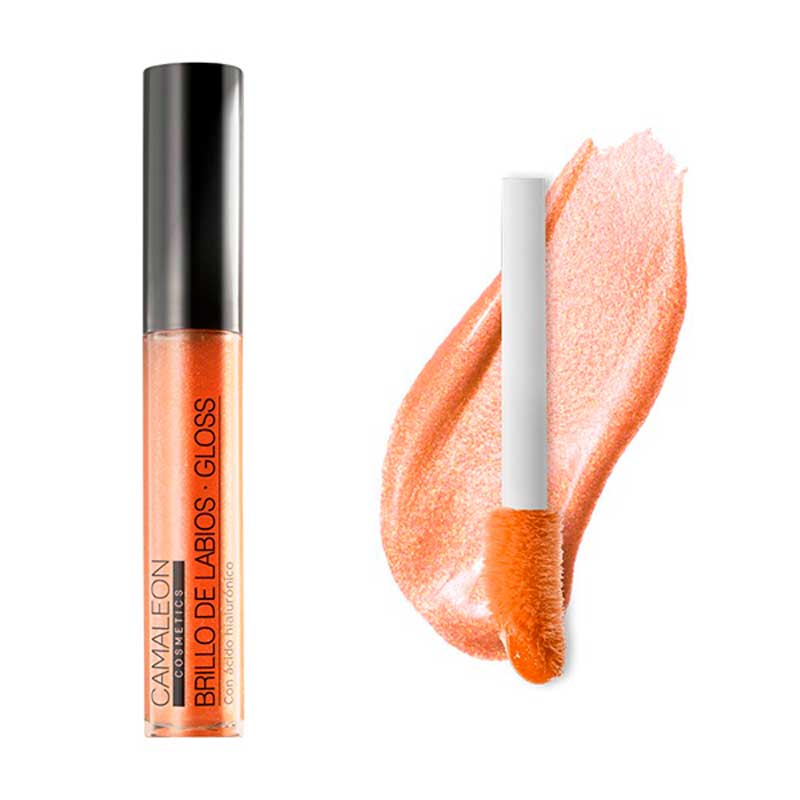 El Brillo Labios Gloss Bronce de Camaleon es un producto de maquillaje para labios con acabado nacarado, hidratante y nutritivo, que cuida los labios aportándoles un velo de color luminoso con el que se conseguirá un efecto volumen para que los labios luzcan más jugosos que nunca. Sus partículas iridiscentes aportan a loslabios un acabado metálico traslúcido y con un extra de volumen pero con el toque justo de glitter. Con Ácido hialurónico: aporta hidratación y volumen, rellena las arrugas y alisa. Aceite de rosa mosqueta: conocido por su alto poder regenerador, el aceite de rosa mosqueta posee grandes beneficios para la piel. Es rico en vitaminas A, C o E y antioxidantes naturales. Nos aporta propiedades hidratantes y reafirmantes y gracias a su poder reparador, nos ayuda a mantener los labios cuidados y en perfectas condiciones. Aceite de pepita de uva: este aceite vegetal extraordinario es un gran aliado frente al envejecimiento de la piel ya que es rico en vitamina E que funciona como antioxidante y además estimula el colágeno y la elastina. De textura ligera, no deja sensación grasa y se absorbe fácilmente por lo que penetra mejor en la piel ayudando a regenerarla y protegerla. Vitamina E: es un potente antioxidante que reduce el envejecimiento y ayuda a proteger los labios.