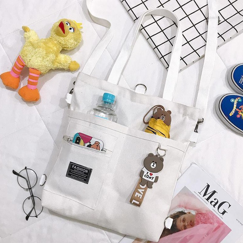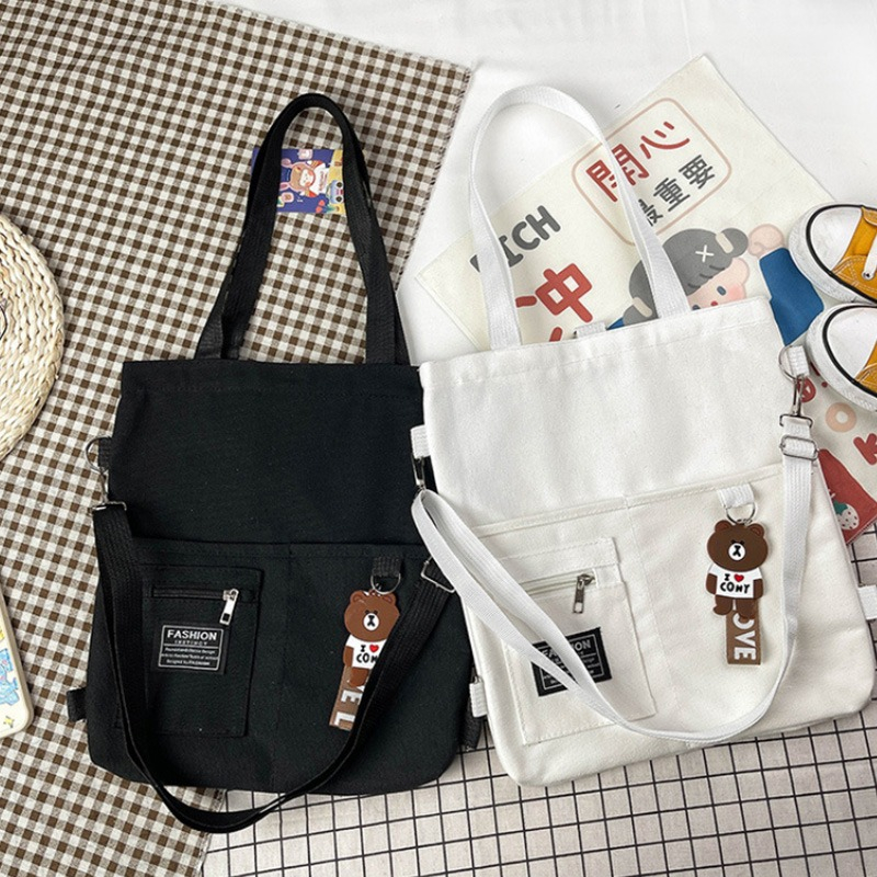 Cartera Bolsa Totebag Moderna Lona Multi Cierres – Pequeña
