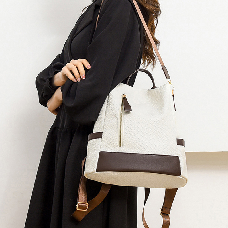 Esta elegante cartera mochila combina estilo y seguridad con un sofisticado diseño en piel sintética con textura de cocodrilo. Su sistema antirrobo te ofrece tranquilidad, con compartimientos estratégicamente ubicados para proteger tus pertenencias. Además, cuenta con múltiples bolsillos internos y externos para organizar cómodamente tus objetos personales. Perfecta para el uso diario, viajes o salidas, su diseño versátil te permite llevarla tanto como mochila o bolso de mano, adaptándose a diferentes ocasiones.