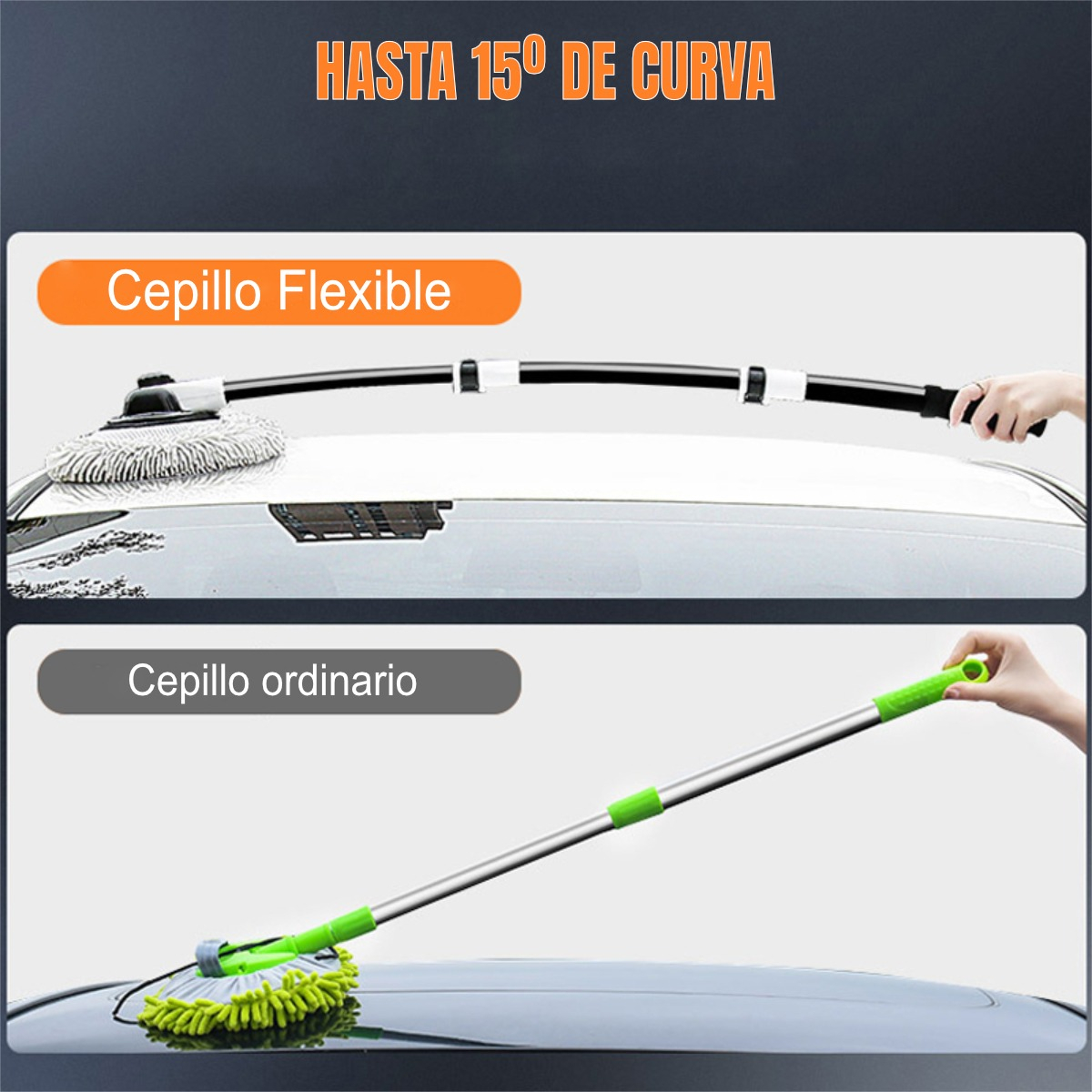 No mas complicaciones a la hora de lavar el auto. Este cepillo flexible te permite llegar a zonas en donde uno ordinario no lo hace. Esta hecho con un material que resiste hasta 27kg.