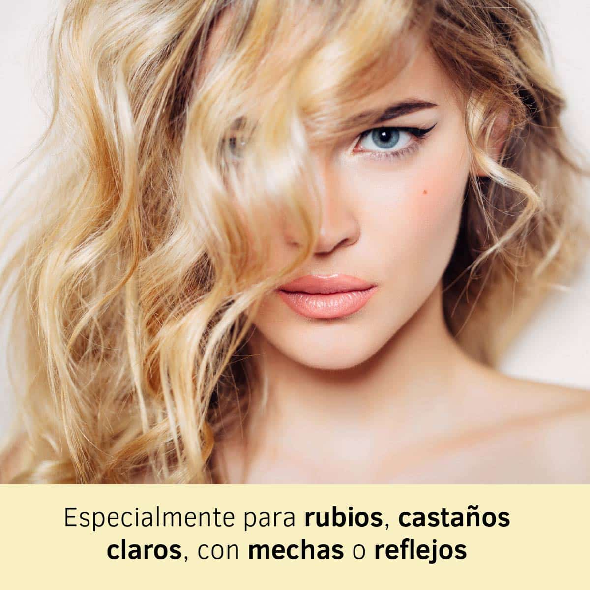 - Suaviza: perfecto para los cabellos rubios que se enredan fácilmente y carecen de volumen.