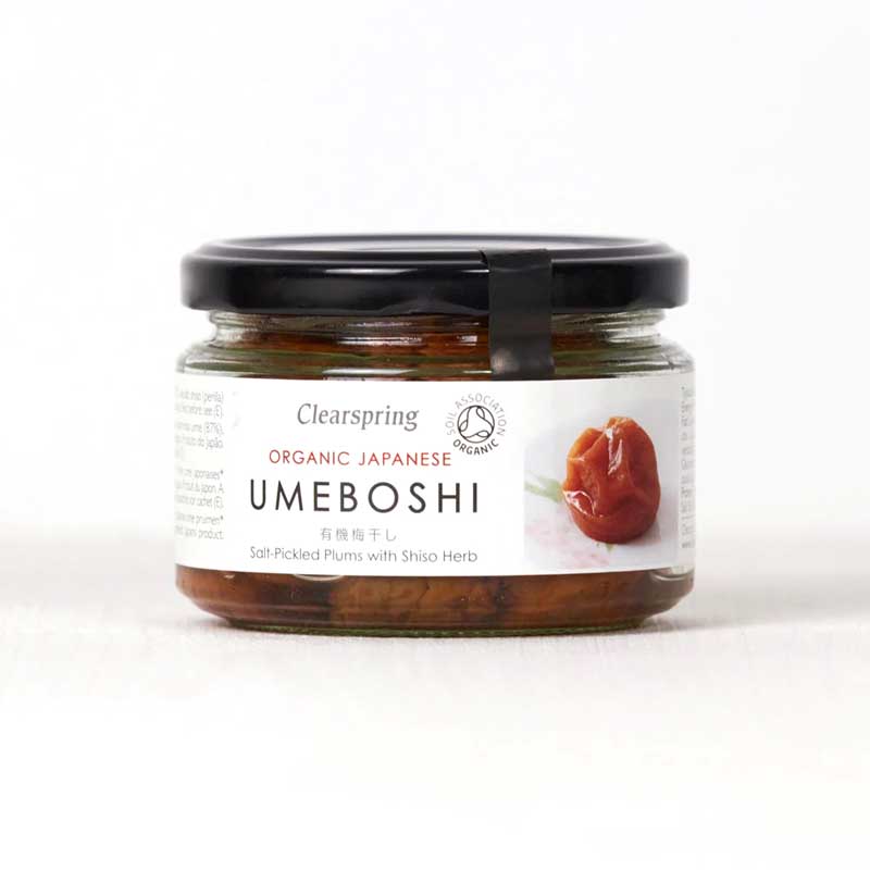 Las ciruelas Umeboshi agrias, picantes y encurtidas de Clearspring son una parte vital de la cocina y medicina japonesa desde hace mucho tiempo. La carne de esta fruta es un saboroso añadido para el sushi y los platos de maíz dulce cocido. Los trozos pequeños de umeboshi son suficientes para añadir sabor a cualquier comida.