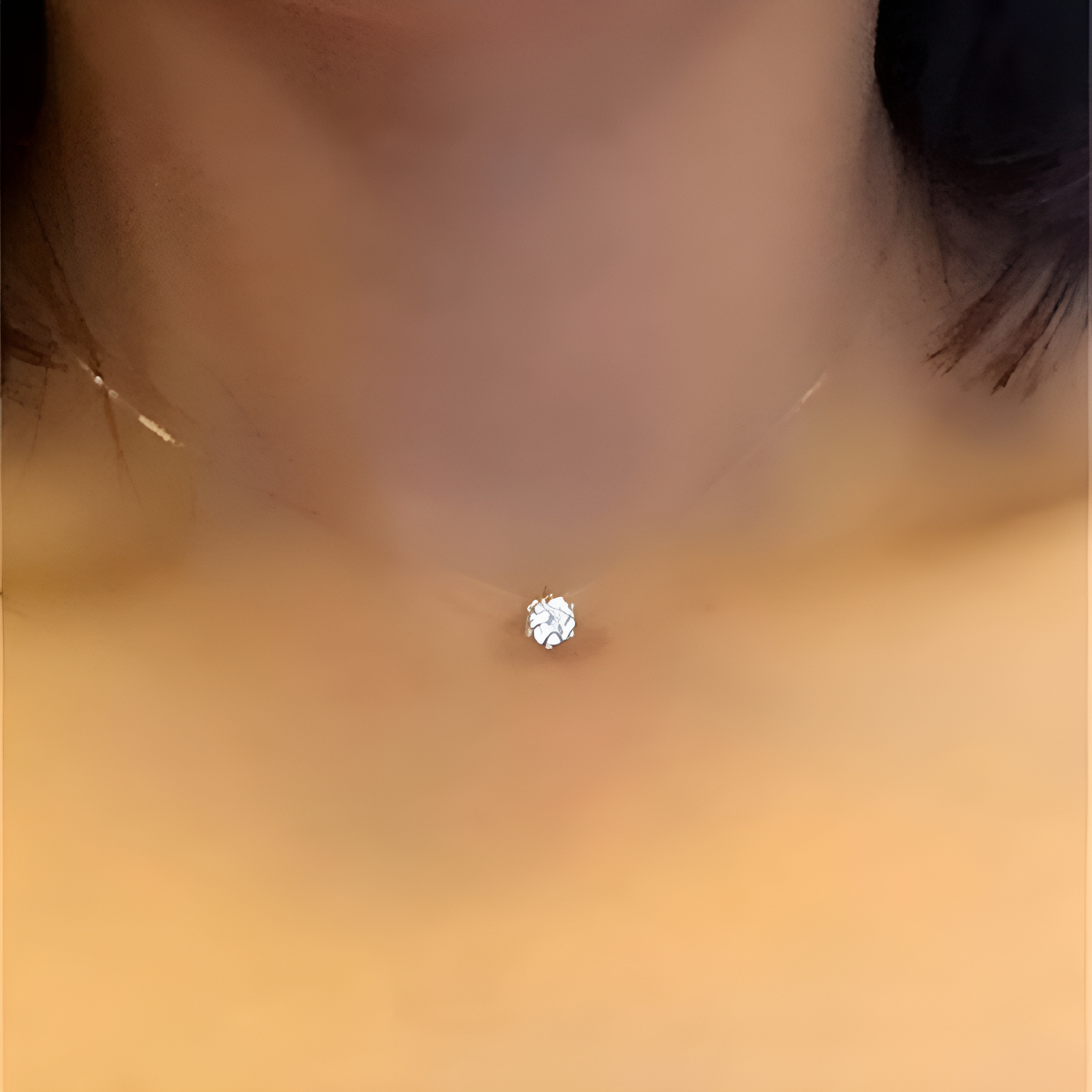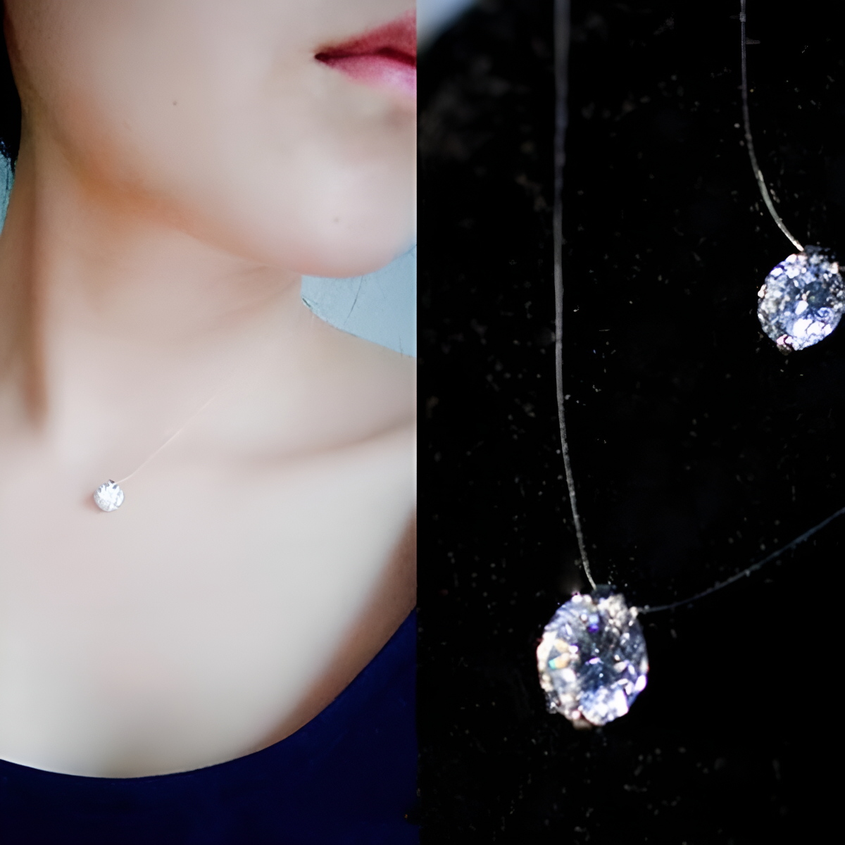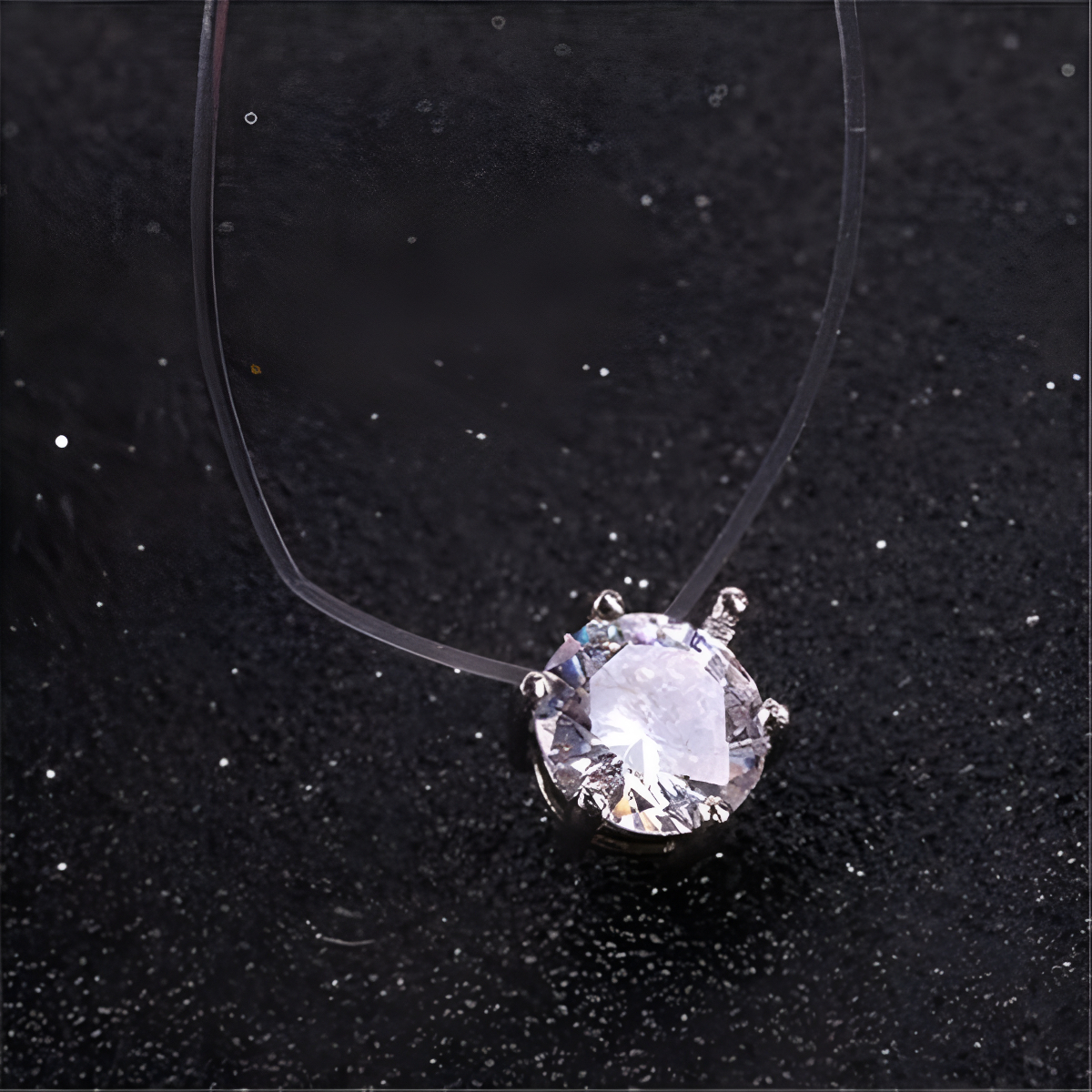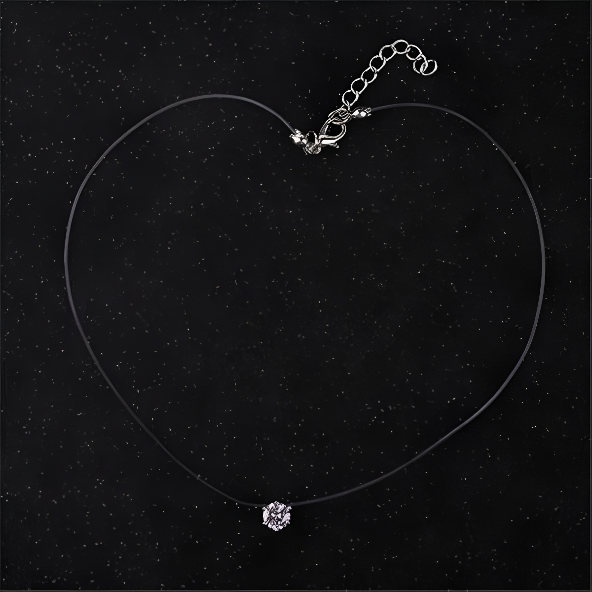 Este elegante collar cuenta con un delicado dije circular estilo diamante de 6 mm que aporta un toque de brillo y sofisticación a cualquier look. La cadena transparente realza el diseño minimalista, logrando un efecto «flotante» que destaca el dije. Incluye un extremo ajustable para adaptarse a diferentes tamaños y ofrecer mayor comodidad. Ideal para complementar tanto atuendos formales como casuales.