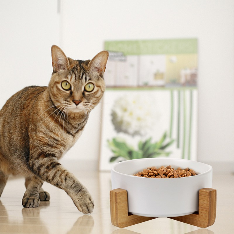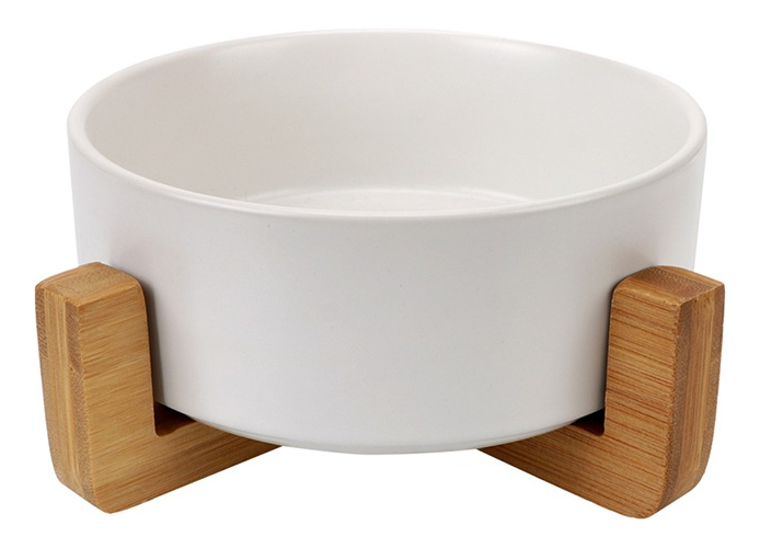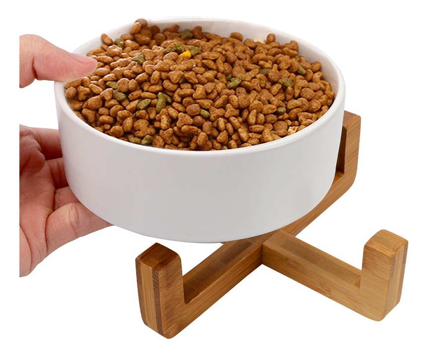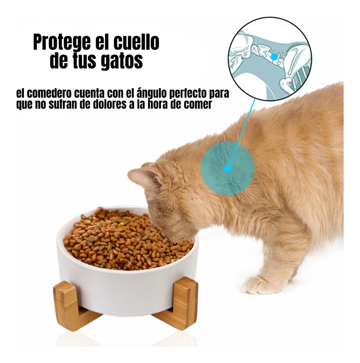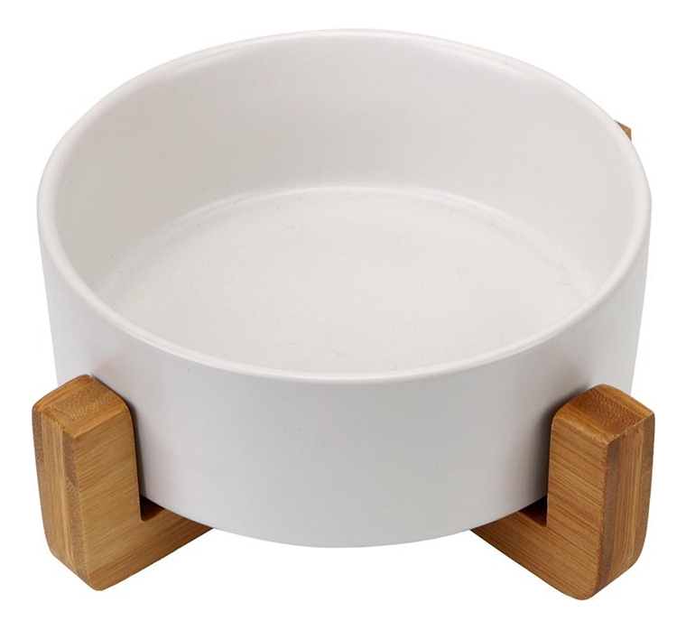 Comedero Bebedero Mascota Elevado Cerámica Base Madera