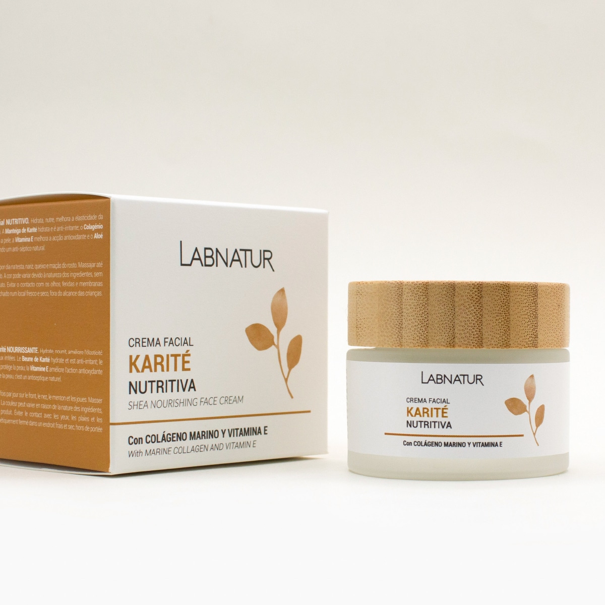 Nuestra Crema Facial de Manteca de Karité 50ml de Labnatur es un tratamiento natural intensivo que hidrata, nutre y protege la piel en profundidad. Formulada con una potente combinación de ingredientes naturales como Manteca de Karité, Colágeno Marino, Aloe Vera y Vitaminas E y F, está especialmente indicada para pieles secas o deshidratadas que necesitan recuperar su hidratación, elasticidad y suavidad.