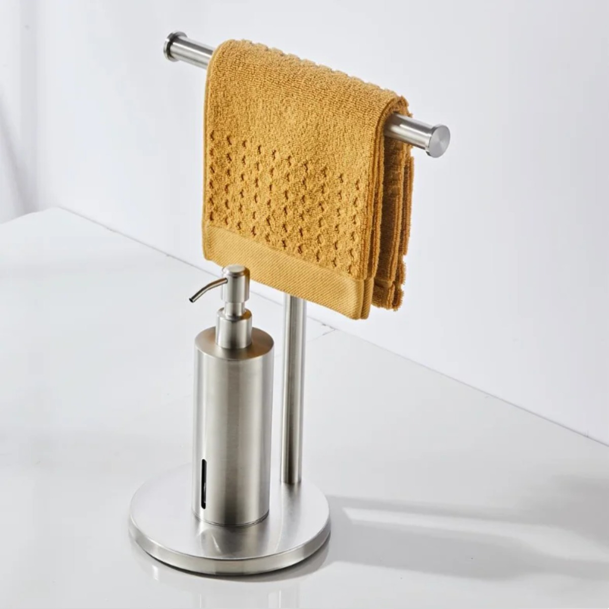 Este dispensador de jabón combina elegancia y funcionalidad en un diseño compacto y práctico. Fabricado en acero inoxidable, es resistente a la corrosión y fácil de limpiar, ideal para cualquier baño o cocina. Incluye un toallero integrado, maximizando el espacio y facilitando el acceso al jabón y a la toalla en un solo lugar. Su diseño moderno se adapta perfectamente a cualquier estilo de decoración, ofreciendo una solución práctica y sofisticada para tu hogar.