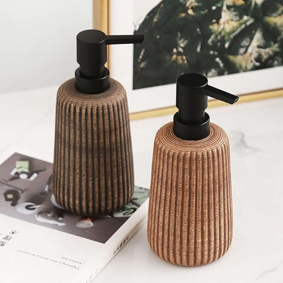 Dale un toque moderno y sofisticado a tu baño con este dispensador de jabón líquido de cerámica texturizada. Su acabado a rayas verticales lo convierten en una pieza elegante y versátil. Fabricado en cerámica resistente, combina diseño y funcionalidad, ideal para jabón líquido, loción o desinfectante. Perfecto para baños, cocinas o tocadores contemporáneos.