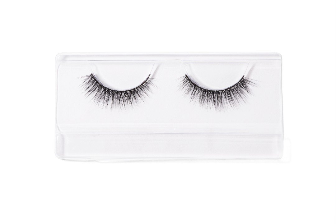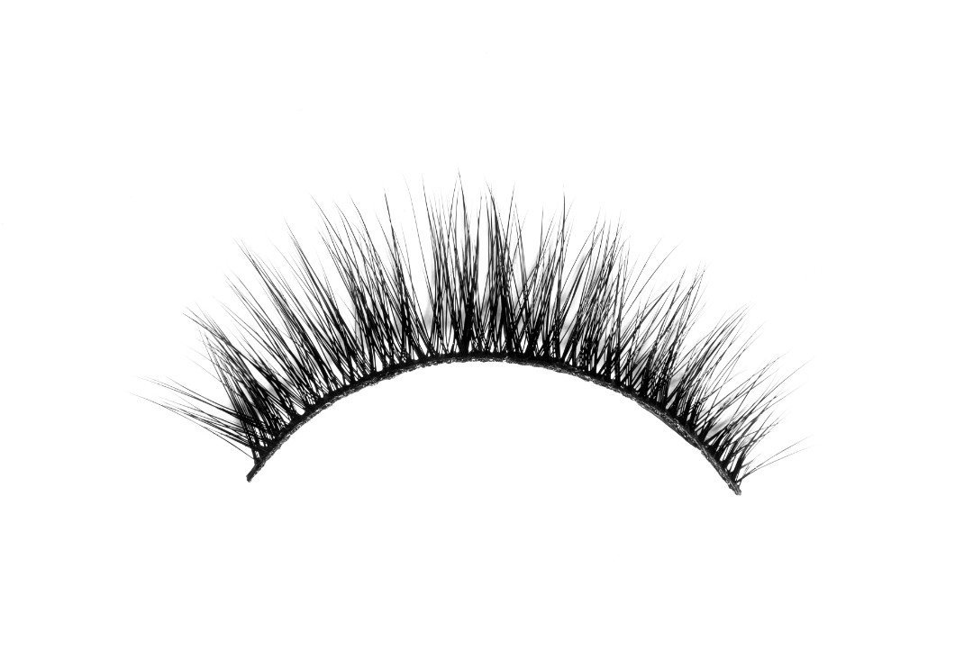 Pestañas postizas con efecto 3D hechas a mano, elaboradas con fibras sintéticas suaves sobre una tira ligera y flexible.