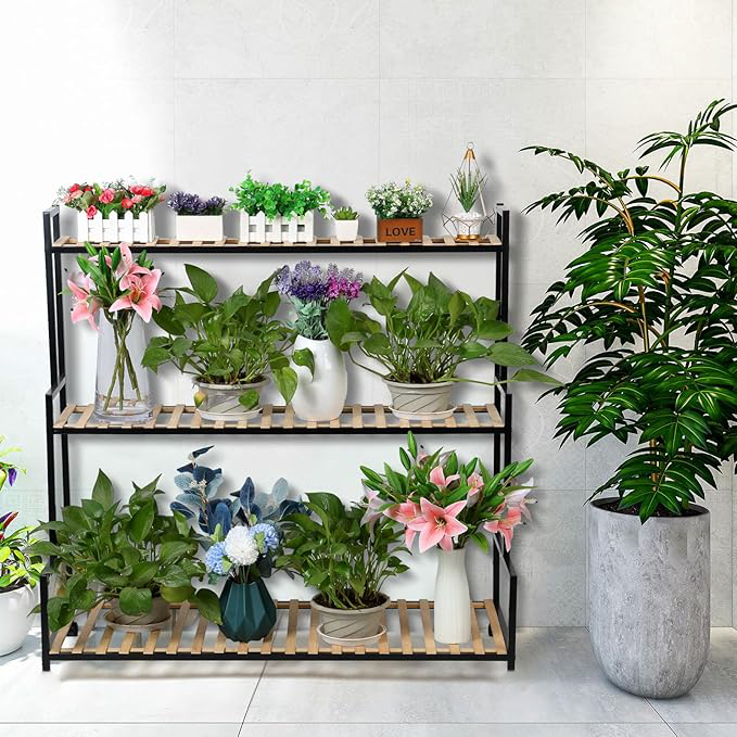 Esta elegante estantería de hierro cuenta con 3 estantes, ideal para exhibir tus macetas y plantas favoritas. Su diseño resistente y duradero es perfecto tanto para interiores como exteriores, aportando un toque decorativo a cualquier espacio. Requiere ensamblado e incluye tornillos y materiales de ensamblado.
