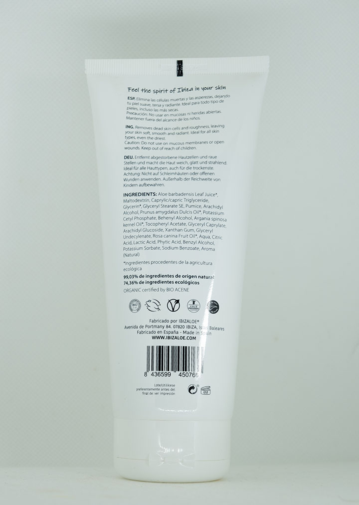 El exfoliante corporal de Ibizaloe contiene una mezcla única de ingredientes que trabajan en sinergia para ofrecerte una experiencia de cuidado excepcional: