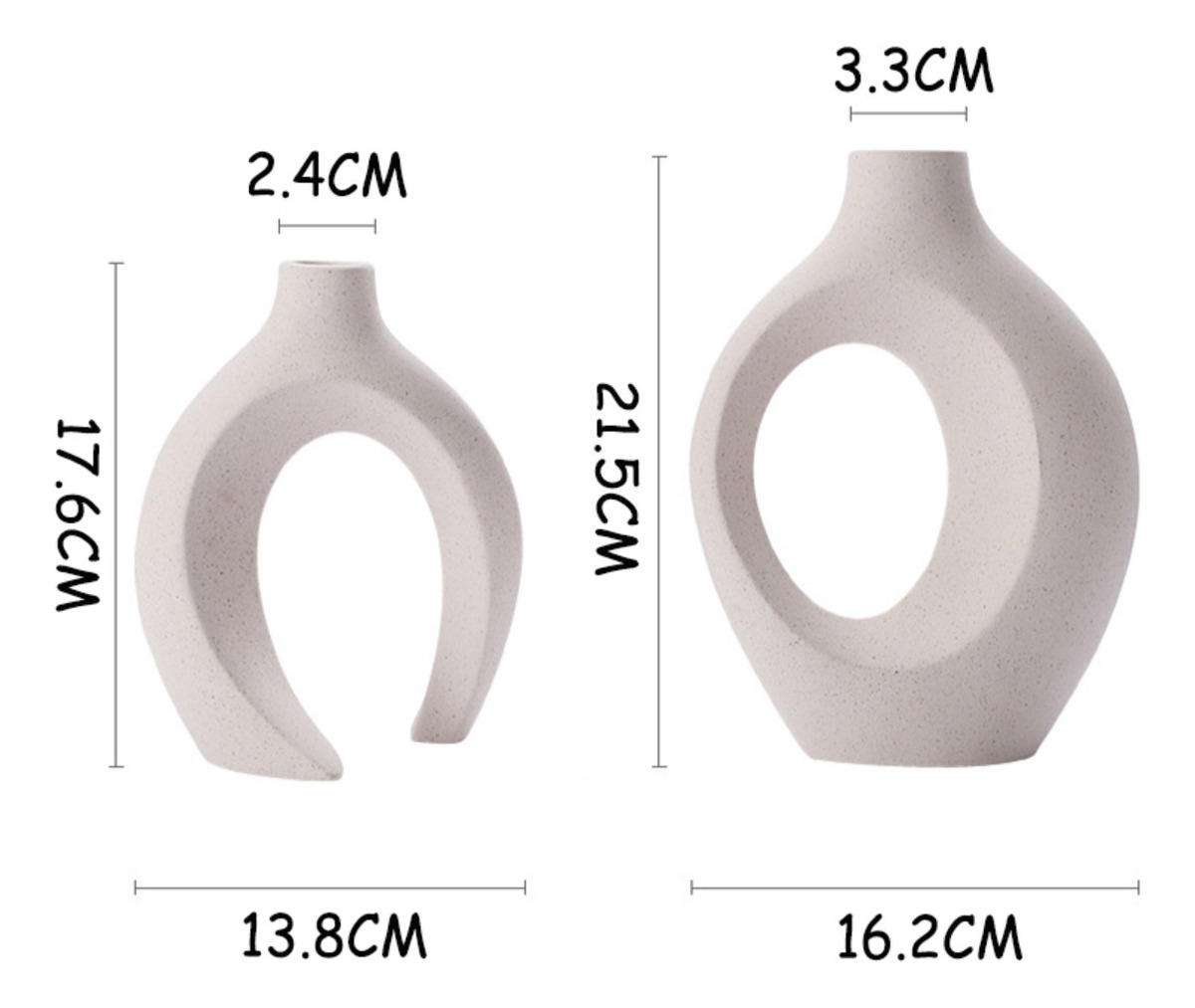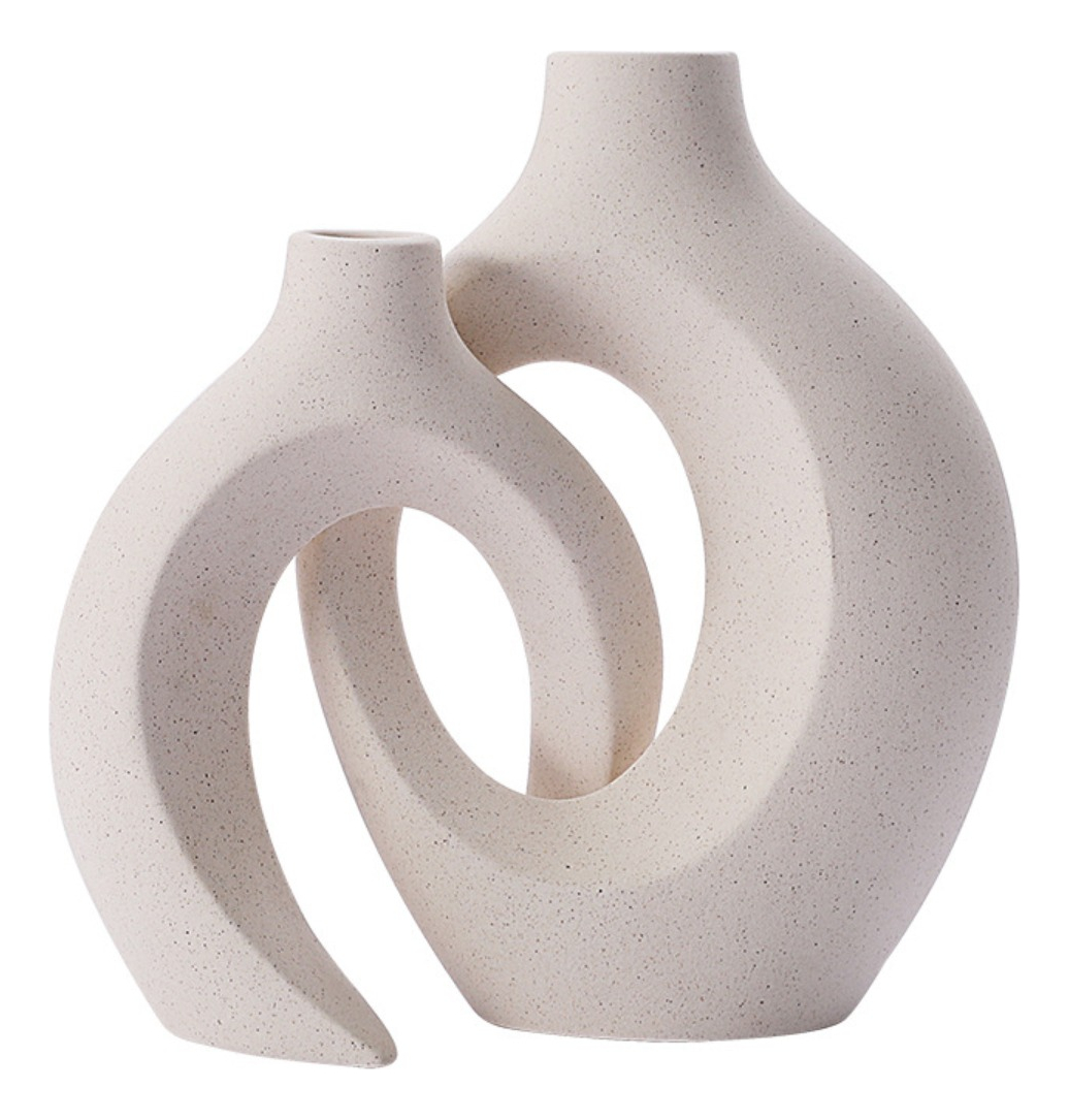 Florero Delicado Moderno Circular Cerámica Arenada Doble