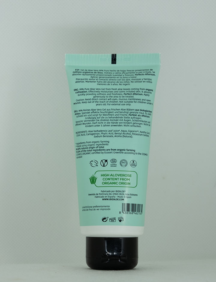 Está elaborado a partir de Aloe Vera Barbadensis Miller cultivado en nuestras propias plantaciones ecológicas en Ibiza, siguiendo métodos tradicionales y un cuidadoso proceso de extracción en frío que ayuda a conservar las propiedades naturales de la planta.