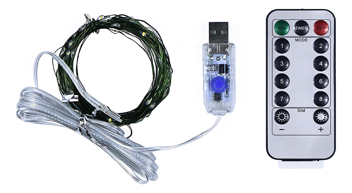 . Contenido: guía LED de 10 m + módulo USB + control remoto.