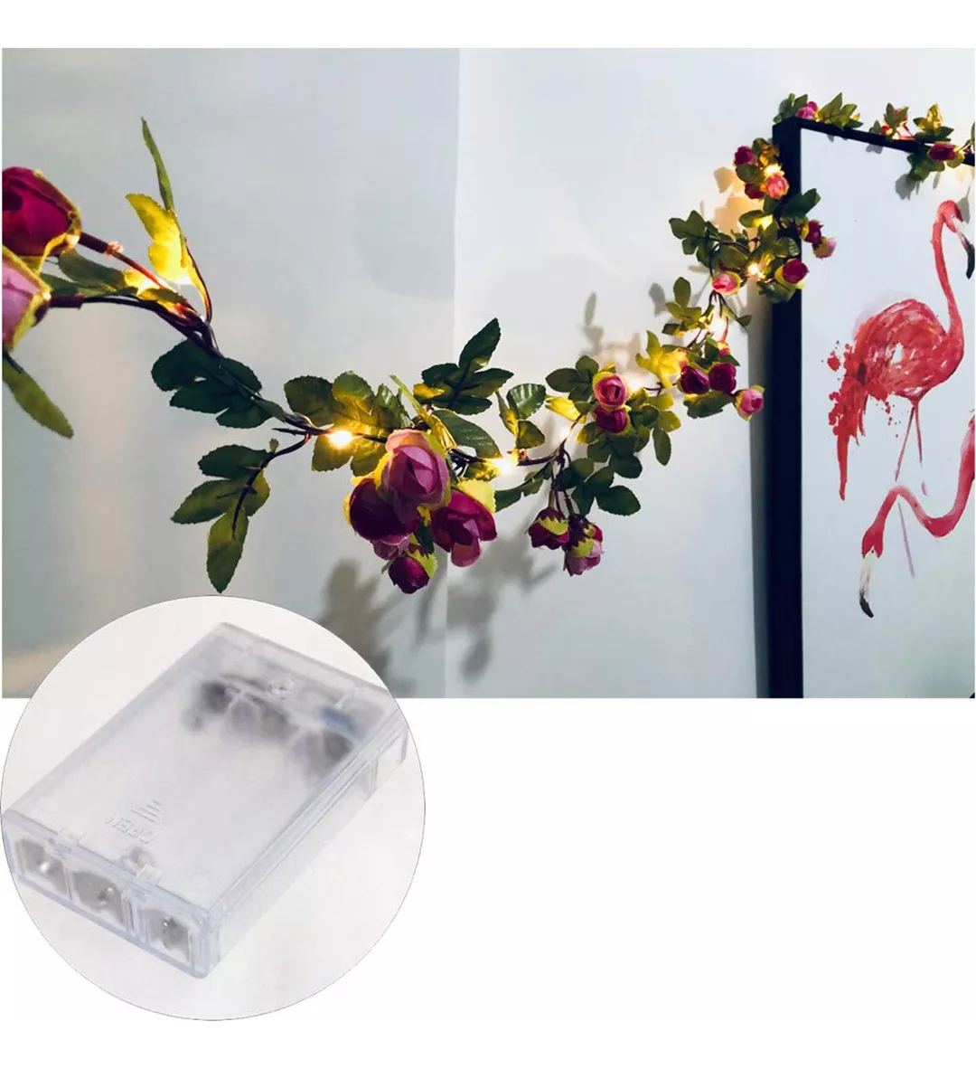 – PORTABLE Y FACIL DE USAR- Alimentado por 3 pilas AA (no incluidas). Sólo tiene que instalar las baterías en la caja de la batería y puede funcionar ahora. La pequeña batería es con interruptor deslizante de encendido / apagado / flash, conveniente para operar la luz de hada de la cuerda y disfrutar de ella. Flexible, portátil y fácil de almacenar. Las luces de cuerda de rosa pueden ser fácilmente para satisfacer sus necesidades de decoración.