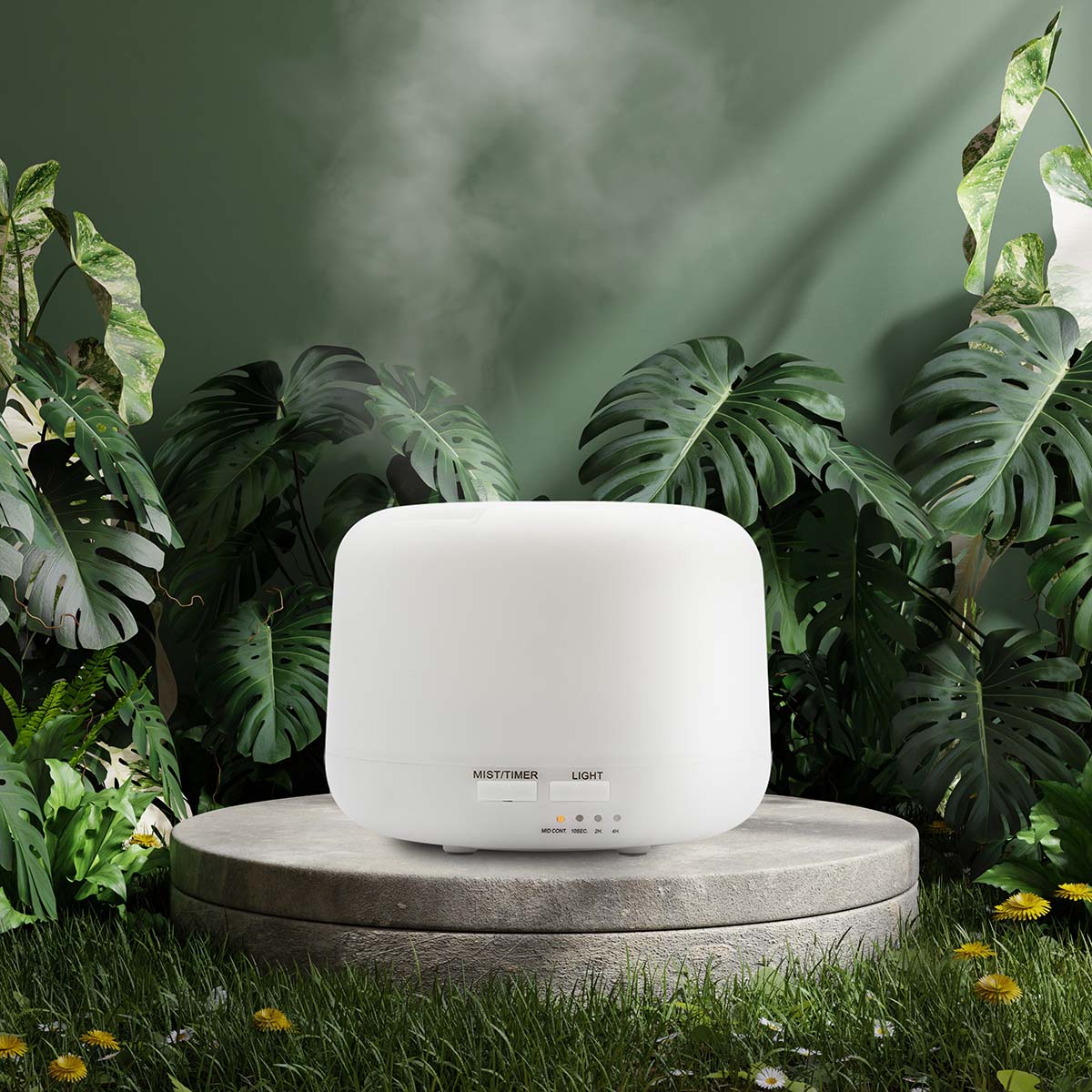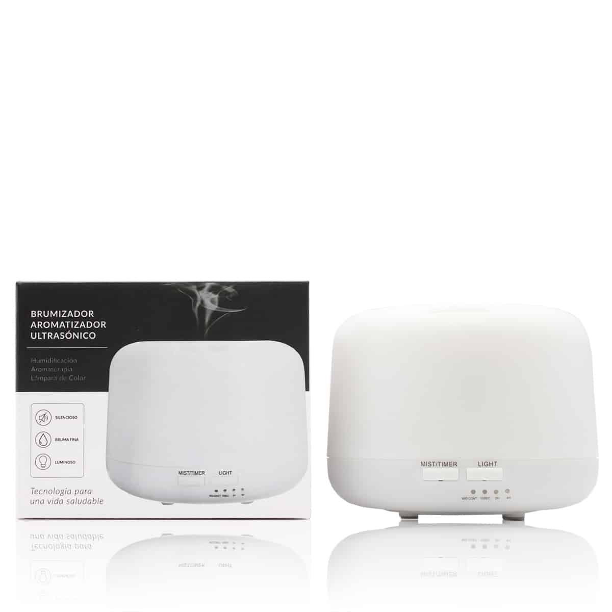También dispone de luces LED de colores, que le dan un toque moderno y elegante a nuestro brumizador. Incorpora distintas opciones de vaporización con temporizador según las veces que se apriete el botón de MIST/TIMER.