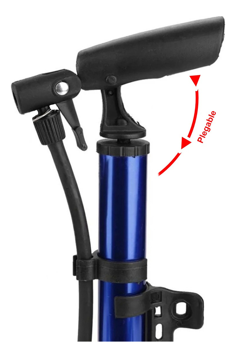 Practico y poderoso inflador para bicicletas, gracias a su sistema de plegado el mismo puede llevarse adherido a la misma sin problemas.