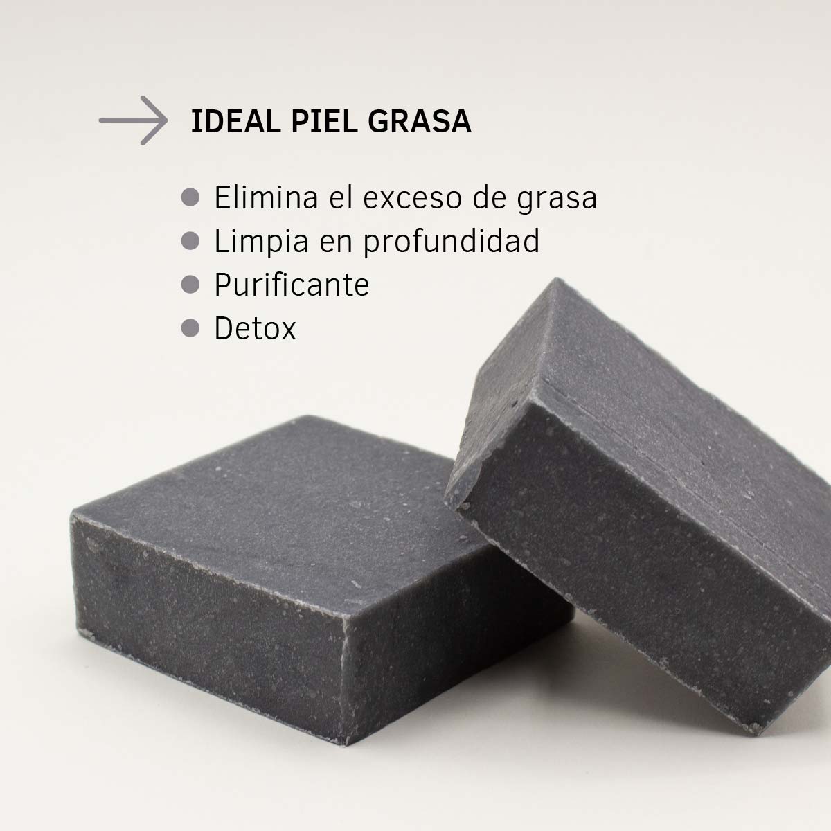 El carbón negro o carbón activo es de naturaleza hipoalergénica. Sus efectos sobre la piel son visibles, consigue una piel más sana y radiante, con una apariencia lisa, fresca e incluso más joven. El carbón negro también tiene un efecto tensor. Ideal para pieles grasas. Utilizar el jabón de carbón activado para problemas de exceso de puntos negros, acné y espinillas. El carbón activado logran limpiar cada poro en profundidad y eliminar todas las impurezas que se acumulan en ellos. Los poros se afinarán y darán a la piel del rostro una apariencia más lisa y tersa.