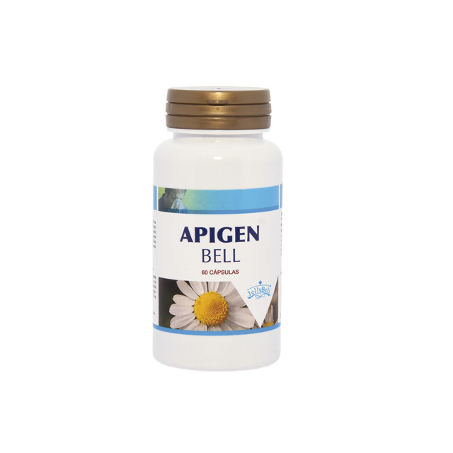 Apigen Bell 60caps Jellybell es un complemento alimentario especialmente formulado para ofrecer una sinergia de nutrientes de origen vegetal y vitaminas que aportan propiedades antioxidantes. La apigenina es un goitrogeno con importantes propiedades y un poder antioxidante que se encuentra de forma natural en diferentes alimentos. Esta se combina con otros nutrientes como el extracto de la manzanilla para contribuir en el mantenimiento de un nivel óptimo de antioxidantes en el organismo humano.