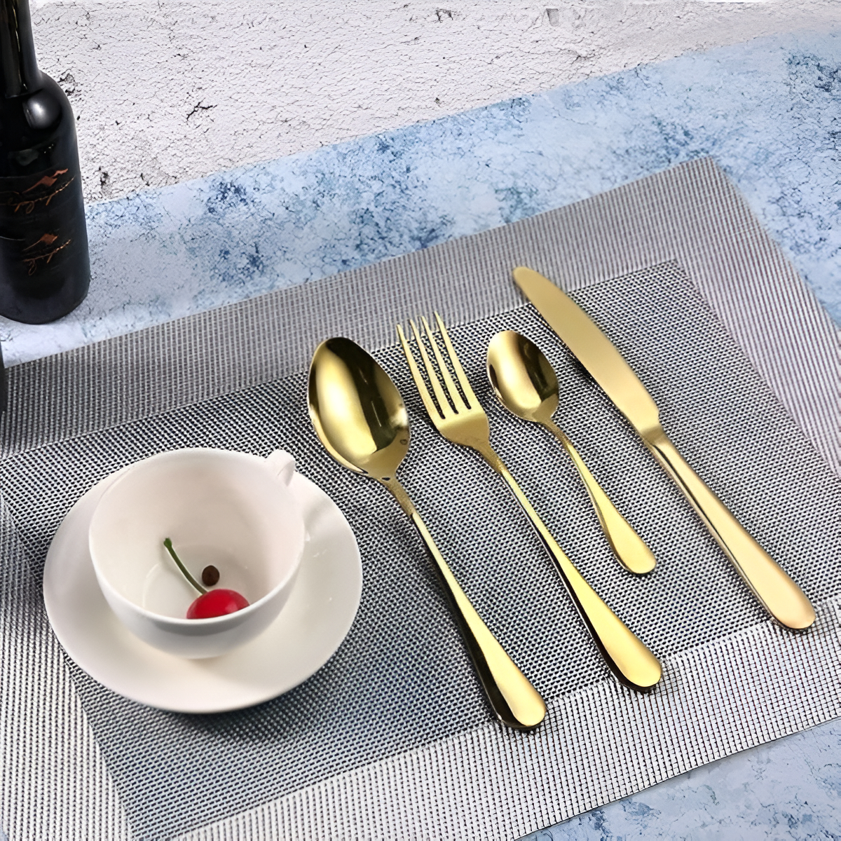 Juego De 4 Cubiertos Acero Inoxidable Clasicos Dorado