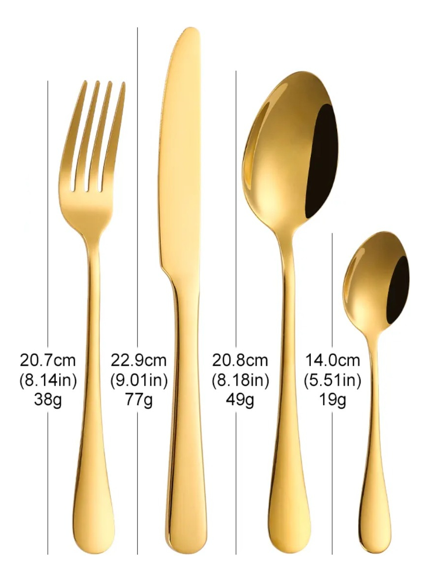 Eleva tus comidas con este elegante juego de cubiertos de 16 piezas, fabricado en acero inoxidable de alta calidad. Cada pieza cuenta con un mango grueso y ergonómico, brindando un agarre cómodo y seguro. Ideal para el uso diario o para ocasiones especiales, este set incluye 4 cuchillos, 4 tenedores, 4 cucharas y 4 cucharitas.