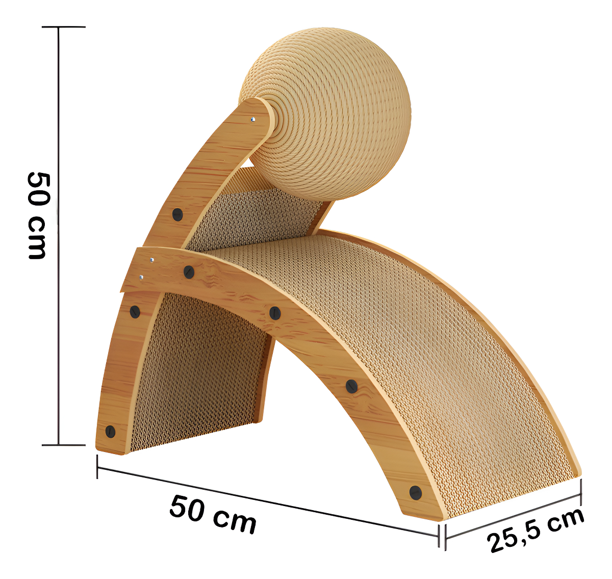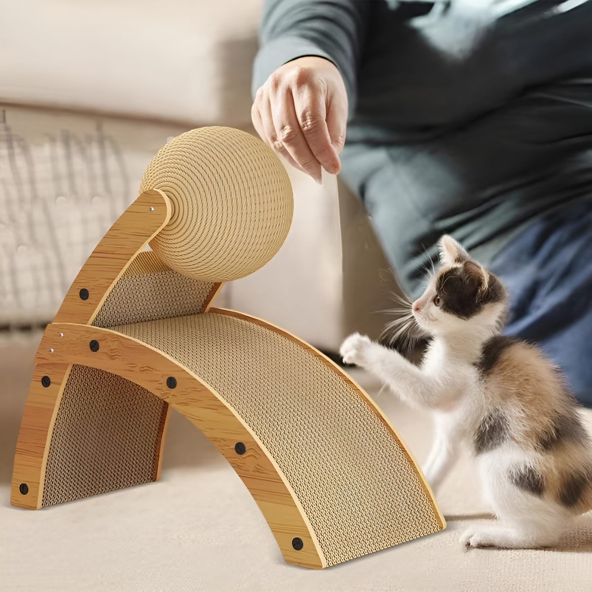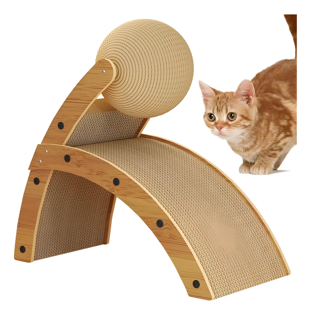 Protegé tus muebles y mantené activo a tu felino con este rascador doble con bola. Su diseño en arco ofrece superficies amplias de cartón para afilar uñas y estirarse, mientras la bola superior estimula el juego y la caza.