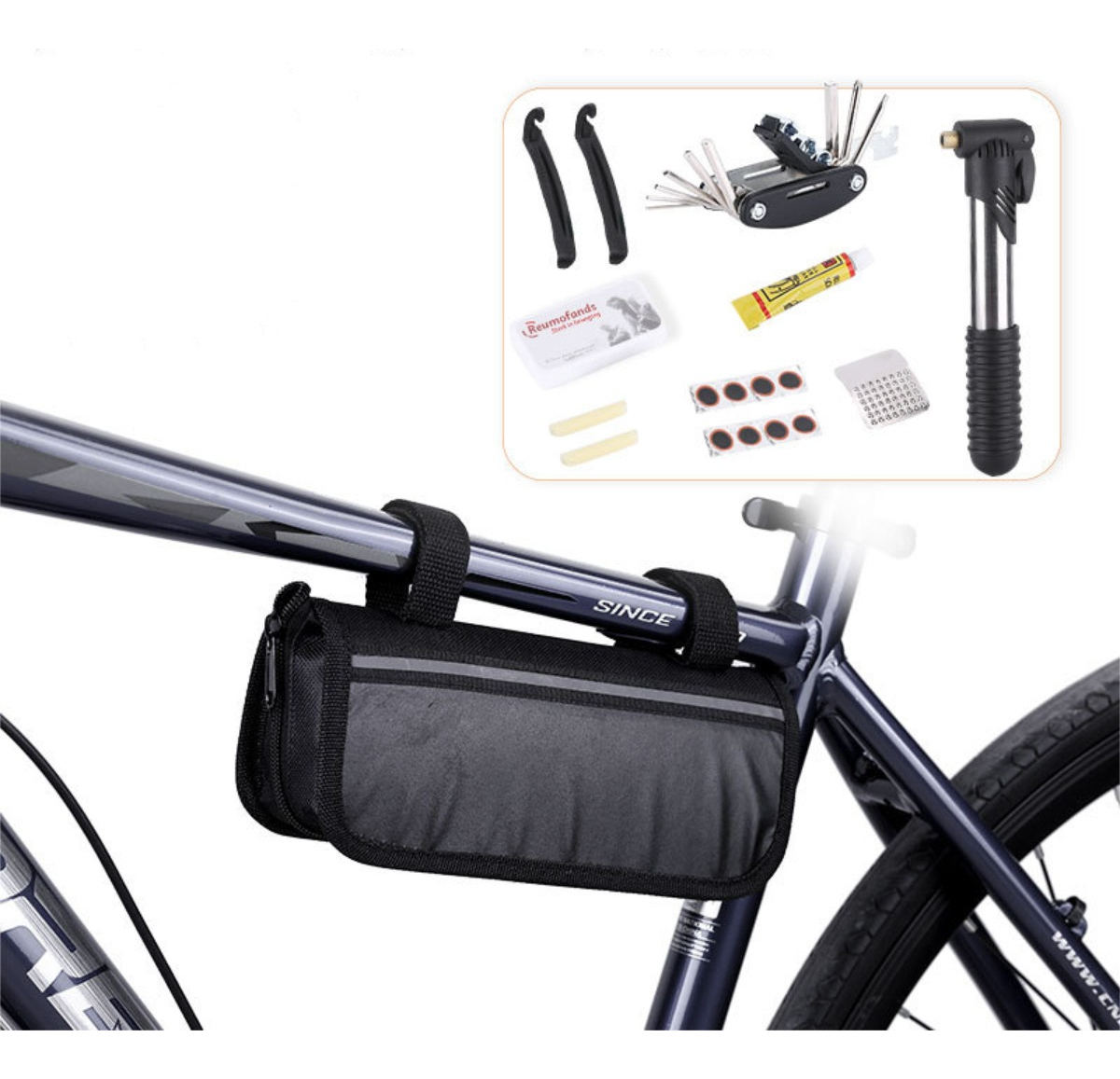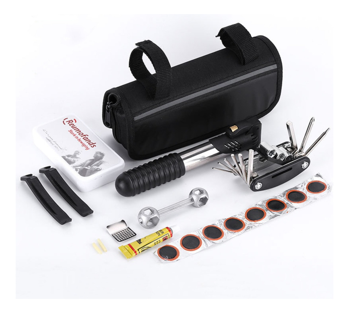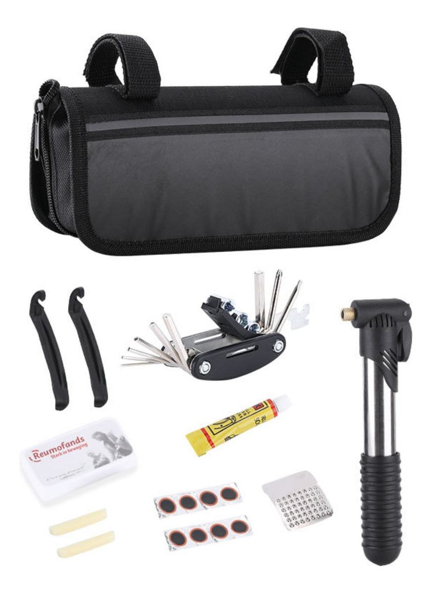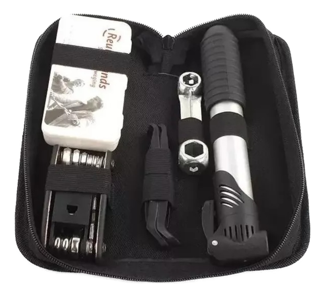 Kit De Herramientas Bicicleta Reparación Con Inflador Gris