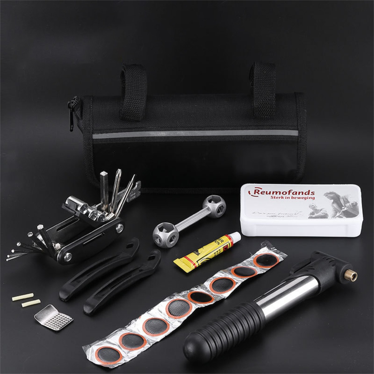 Sé el primero en valorar “Kit De Herramientas Bicicleta Reparación Con Inflador Gris”