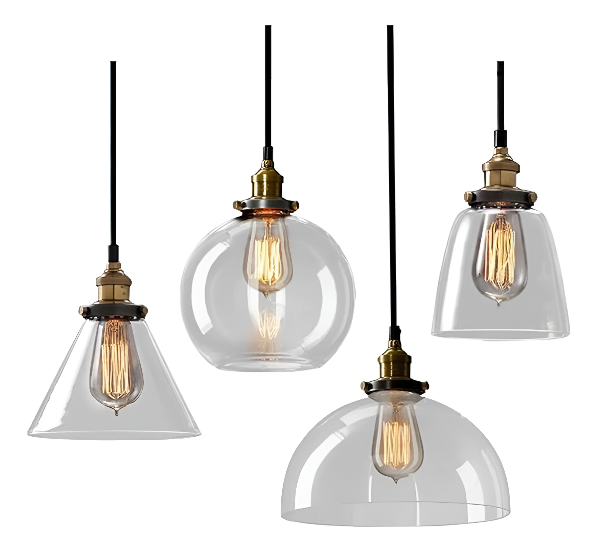 Dale un toque único y moderno a tus espacios con esta elegante lámpara colgante de diseño industrial. Incluye 4 pantallas de vidrio, cada una con un tamaño distinto, que crean un efecto visual atractivo y sofisticado. Perfecta para decorar salones, comedores, bares o cualquier ambiente que requiera estilo y funcionalidad.