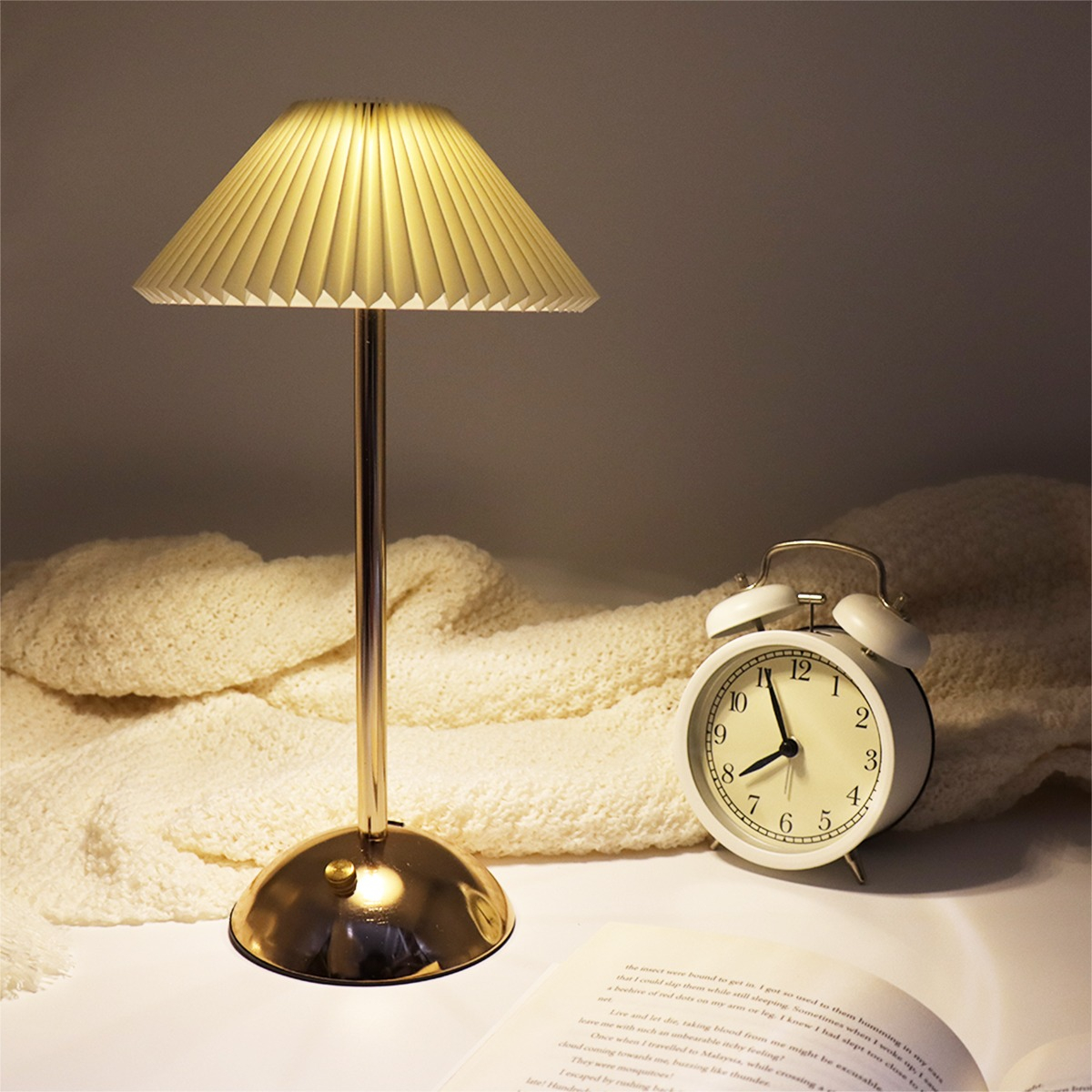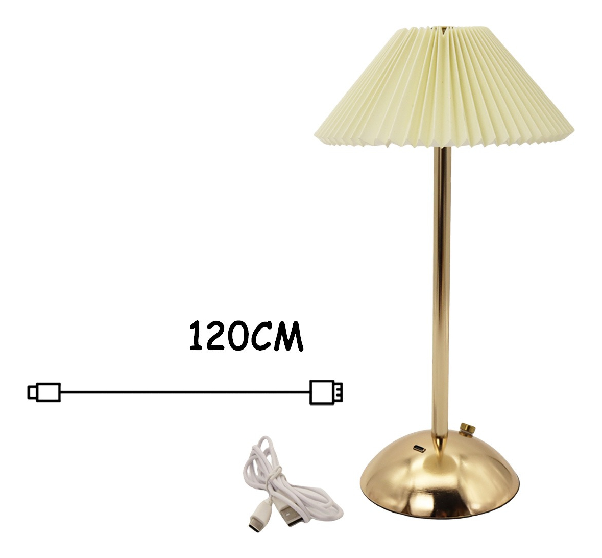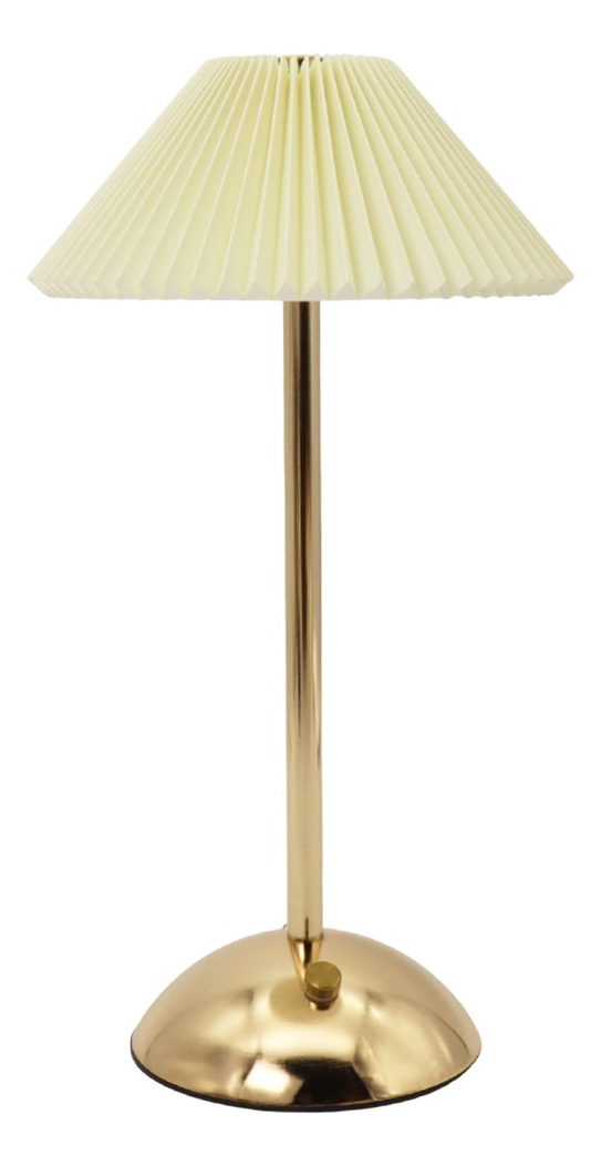Dale un toque elegante y cálido a tus espacios con esta lámpara de mesa estilo vintage. Su diseño alto con base metálica dorada y pantalla plisada combina perfectamente con ambientes modernos, clásicos o minimalistas. Funciona con luz LED, es recargable por USB e inalámbrica, ideal para usar en escritorios, mesas de noche, livings o espacios de lectura. Encendido táctil con niveles de brillo ajustables para crear la atmósfera perfecta. Además, su formato portátil te permite moverla con facilidad sin depender de enchufes.