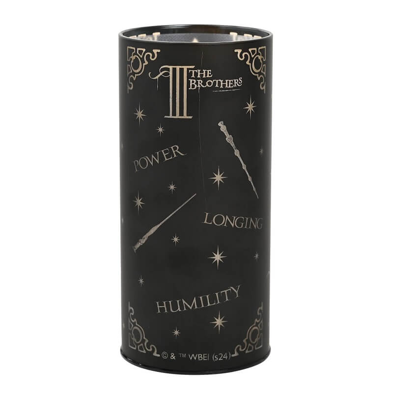La Lámpara Reliquias de la Muerte es más que una simple fuente de luz; es una pieza de decoración que atrae todas las miradas y suscita conversación. Fabricada con materiales de alta calidad y con un acabado detallado, esta lámpara no solo es duradera, sino también increíblemente estilizada para adaptarse a cualquier decoración. Su luz crea una atmósfera encantadora, perfecta para leer tu novela favorita de Harry Potter o simplemente para disfrutar de un momento de tranquilidad en su cálido resplandor.